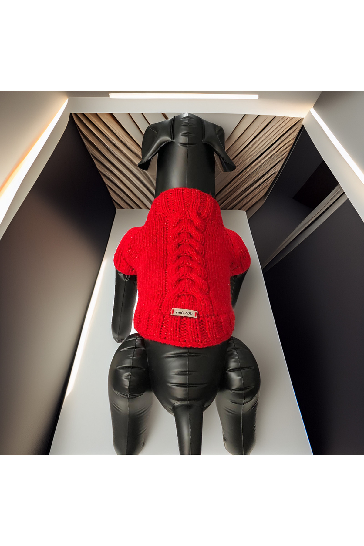 Kedi ve Köpek için Kırmızı Saç Örgülü Kazak Kedi ve Köpek için Kırmızı Saç Örgülü Kazak LF-250 L