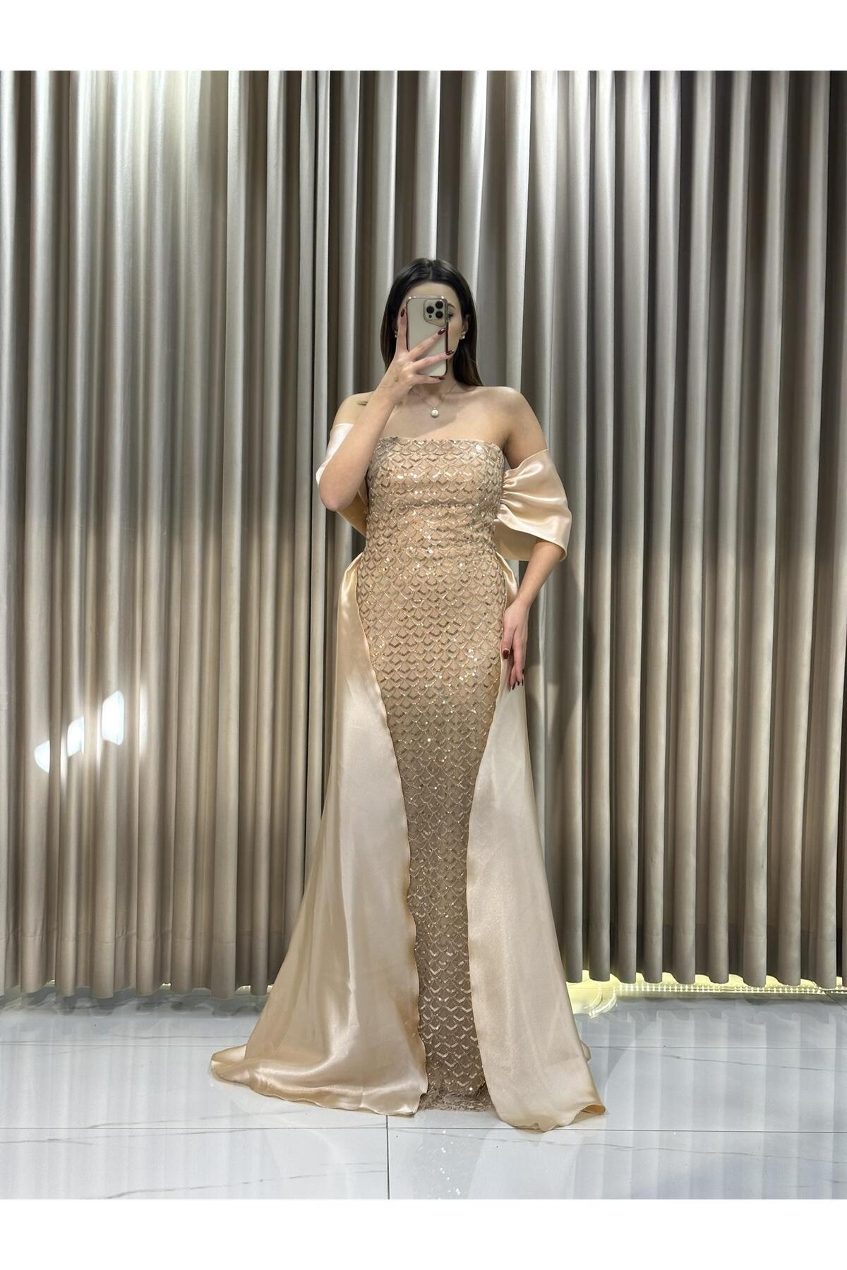 Gold Yeni Sezon Gül Pelerin Detay Abiye 5666 Gold Yeni Sezon Gül Pelerin Detay Abiye 5666 EN5666 42