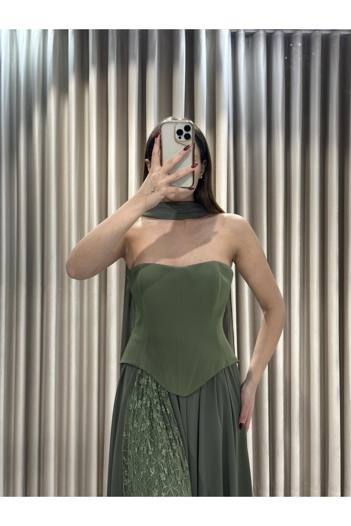 Haki Straplez Şifon Dantel Detay Yeni Sezon Abiye 5681 Haki Straplez Şifon Dantel Detay Yeni Sezon Abiye 5681 EN5681 42
