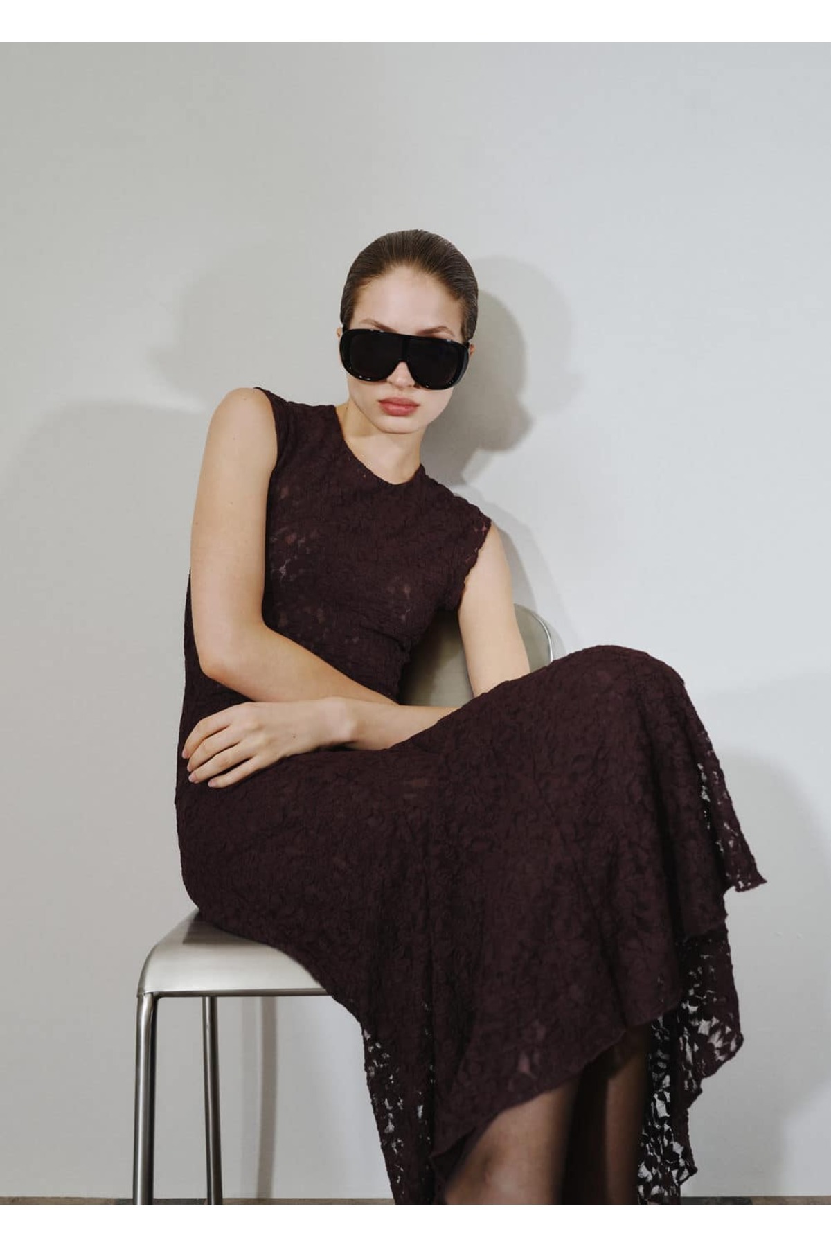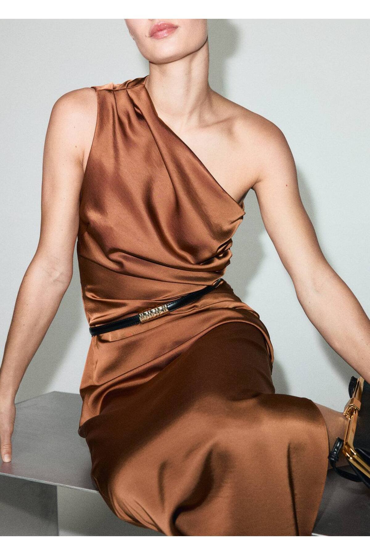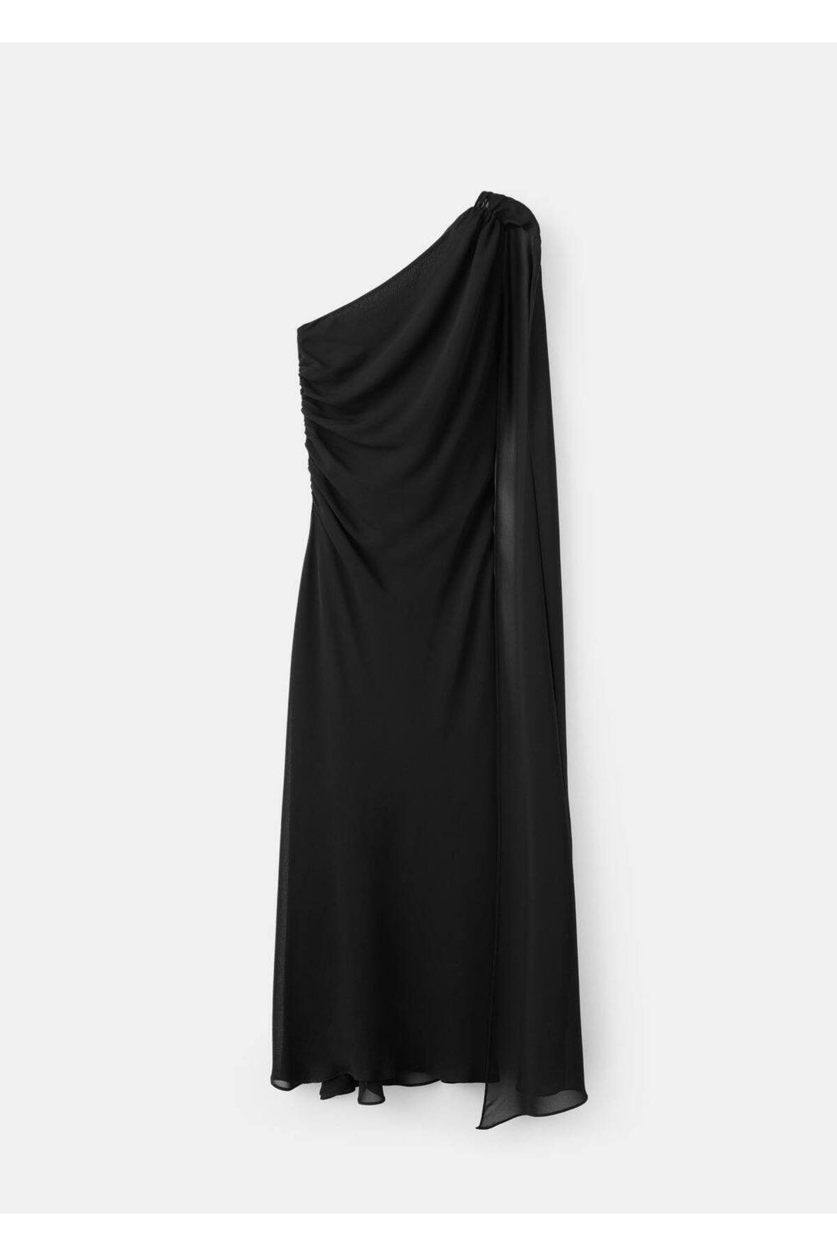 Şal detaylı asimetrik elbise Şal detaylı asimetrik elbise 17019112 XL