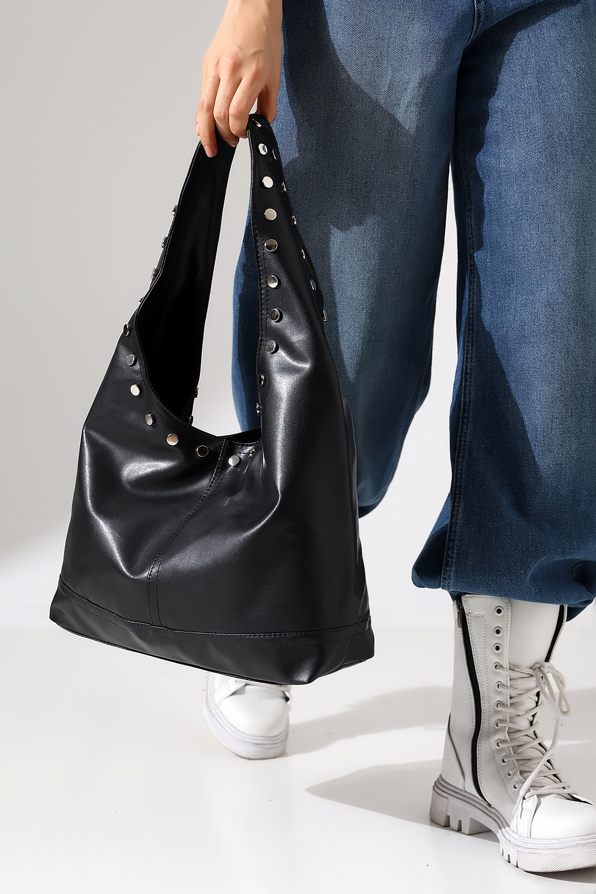 Siyah Kadın Çanta Zımba Detaylı Omuz Kol ve El Çantası Siyah Kadın Çanta Zımba Detaylı Omuz Kol ve El Çantası BLZZIMBA01 Standart