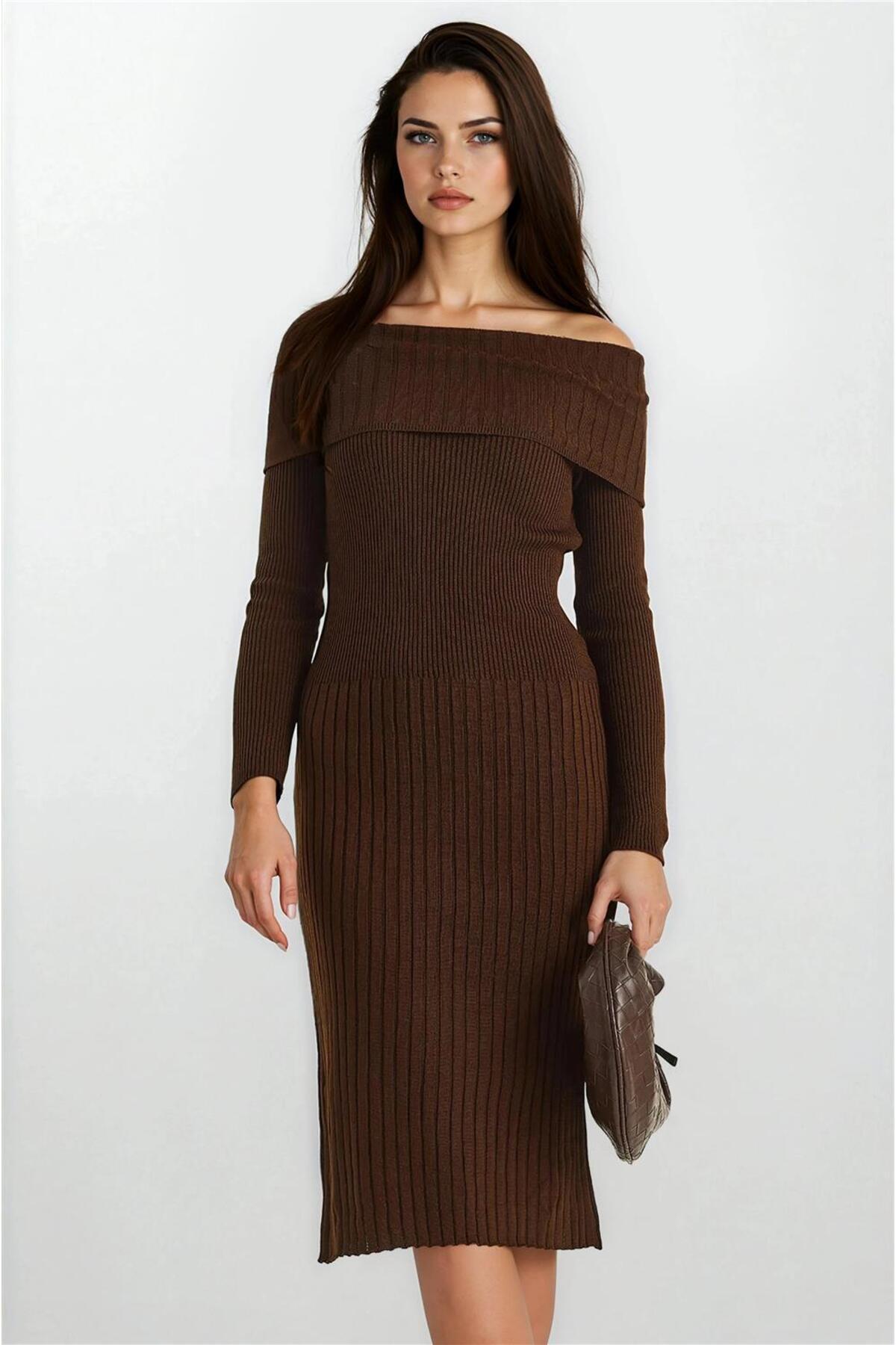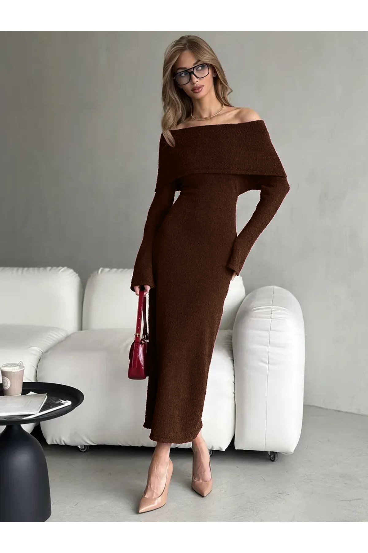 Beyaz Madonna Yaka Tasarım Uzun Triko Elbise GAUS-00126 Beyaz Madonna Yaka Tasarım Uzun Triko Elbise GAUS-00126 Standart