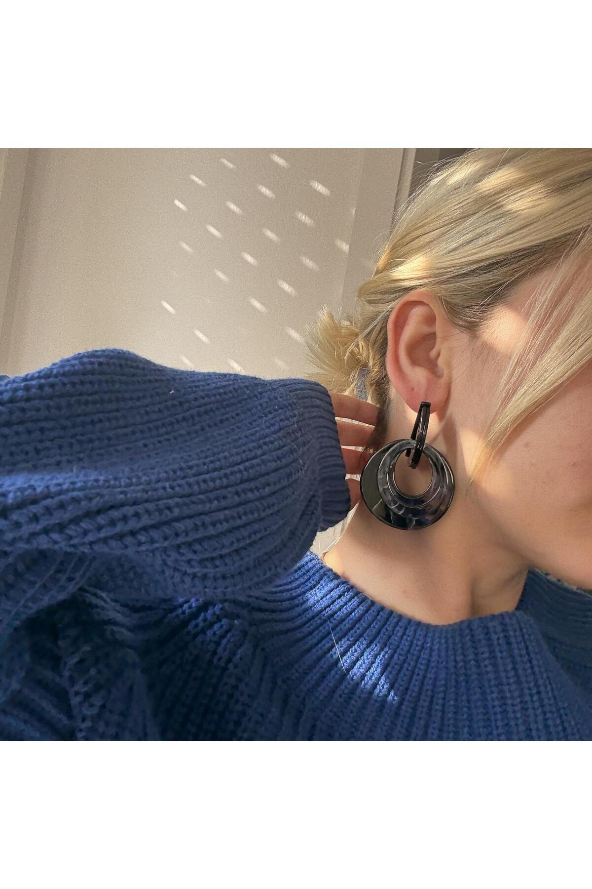 Siyah Halkalı Akrilik Küpe Siyah Halkalı Akrilik Küpe alc8779 تک سایز