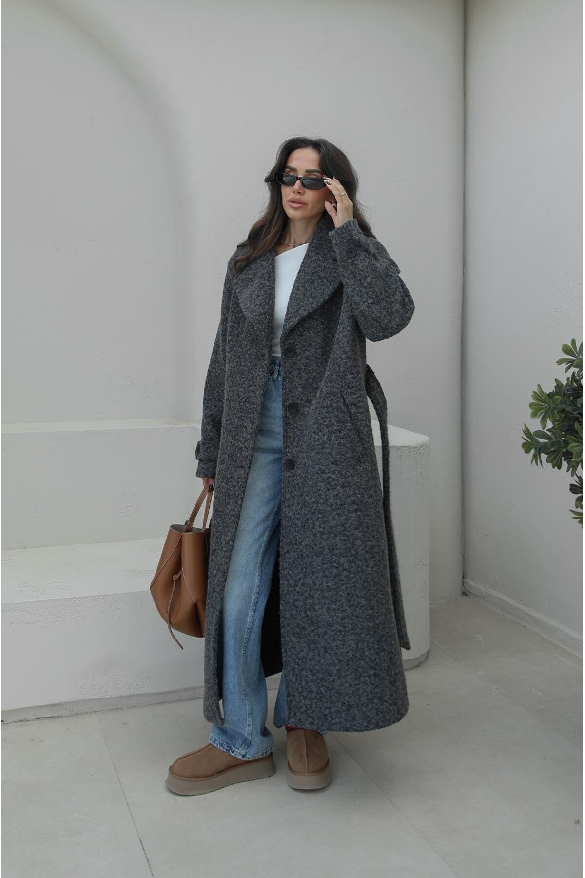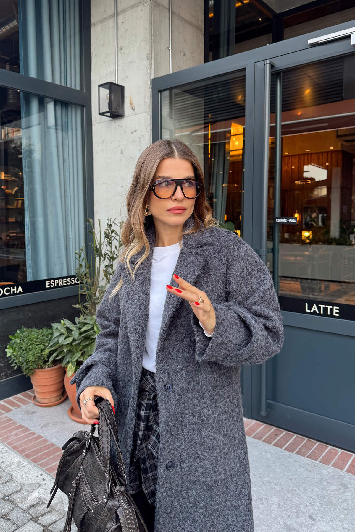 Antrasit Yün Dokulu Astarlı Düğmeli Kaban Antrasit Yün Dokulu Astarlı Düğmeli Kaban KBN1023 L