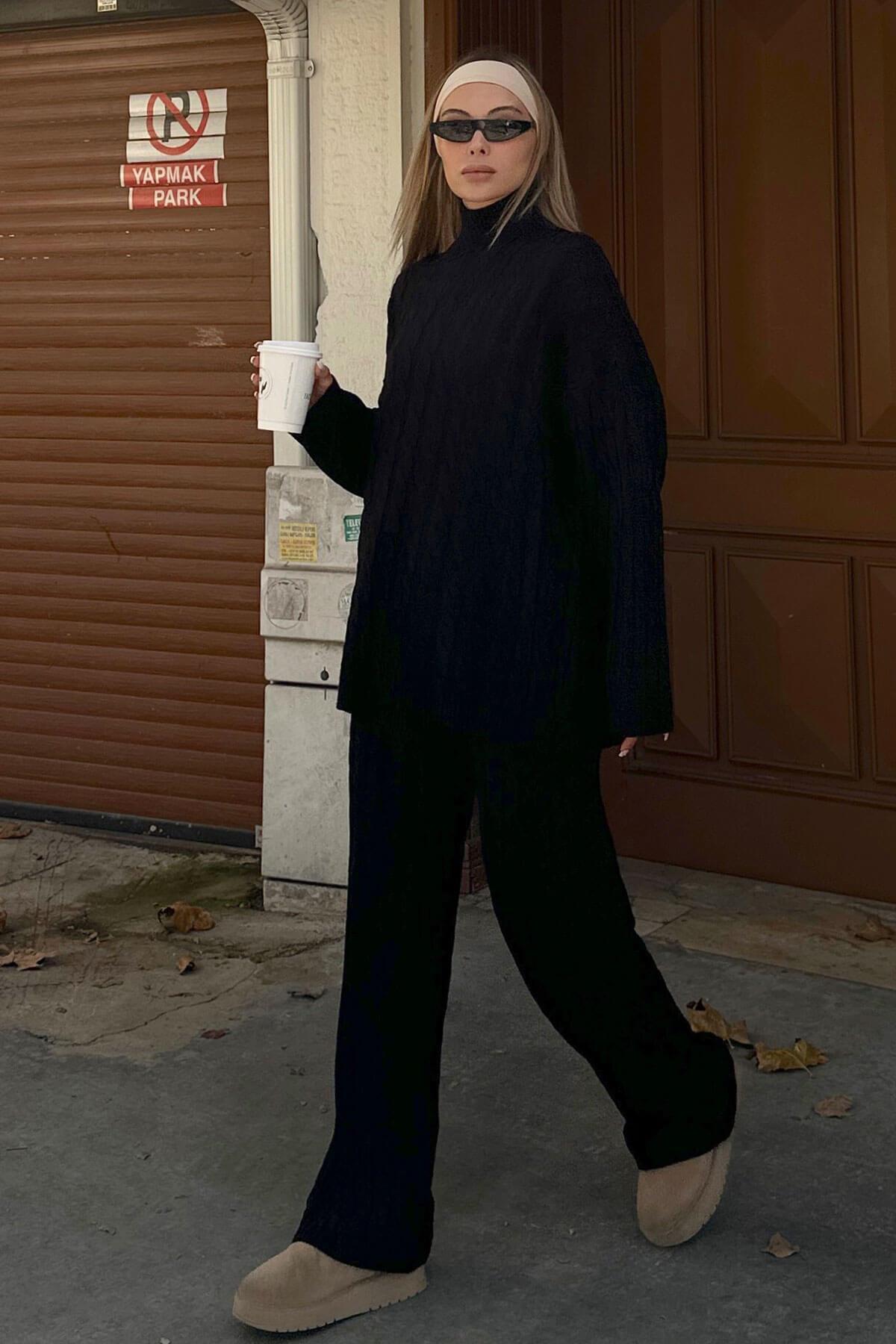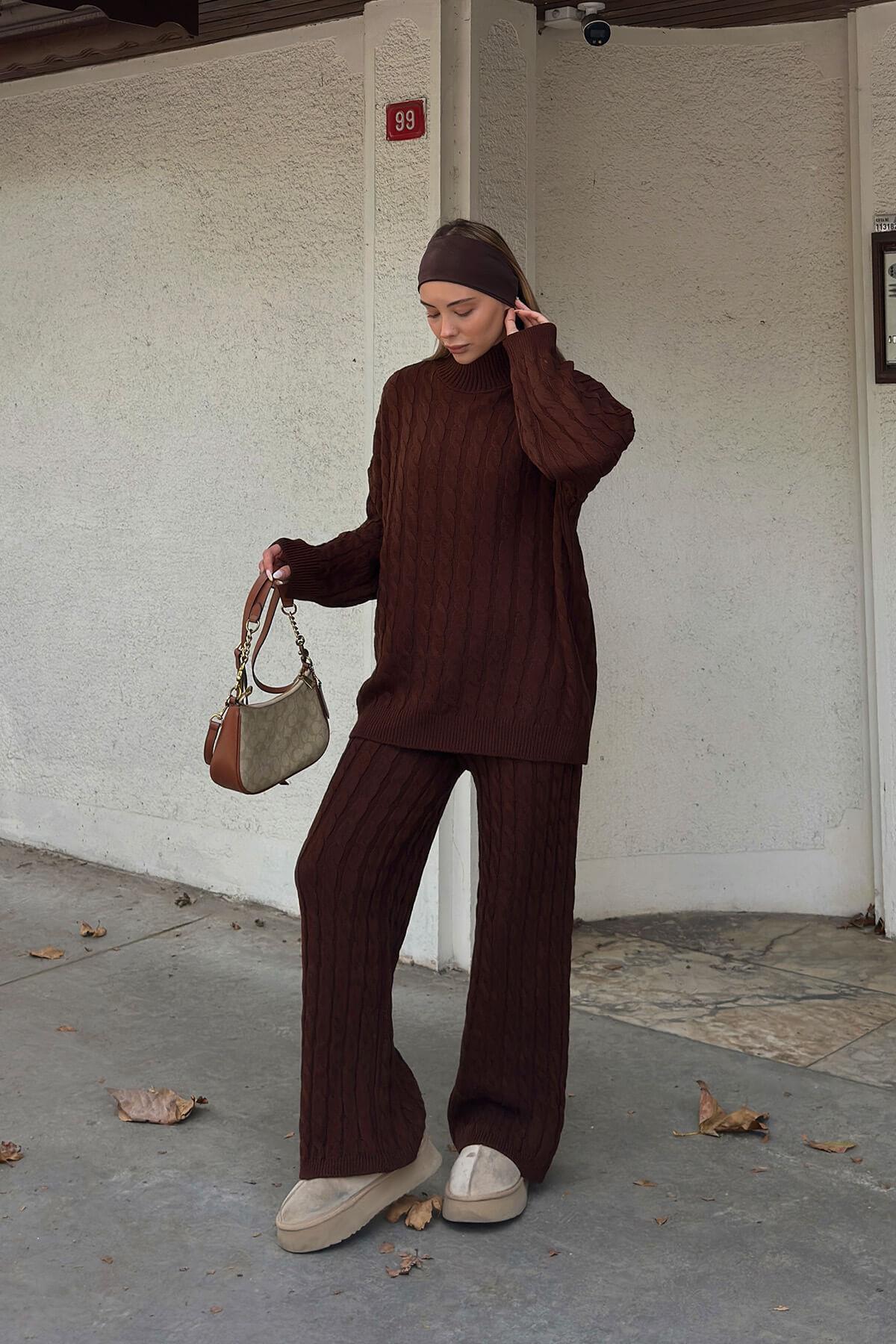 Kahverengi Tail Saç Örgü Desenli Kazak-Pantolon Kadın Alt Üst Takım Kahverengi Tail Saç Örgü Desenli Kazak-Pantolon Kadın Alt Üst Takım 44963 Standart