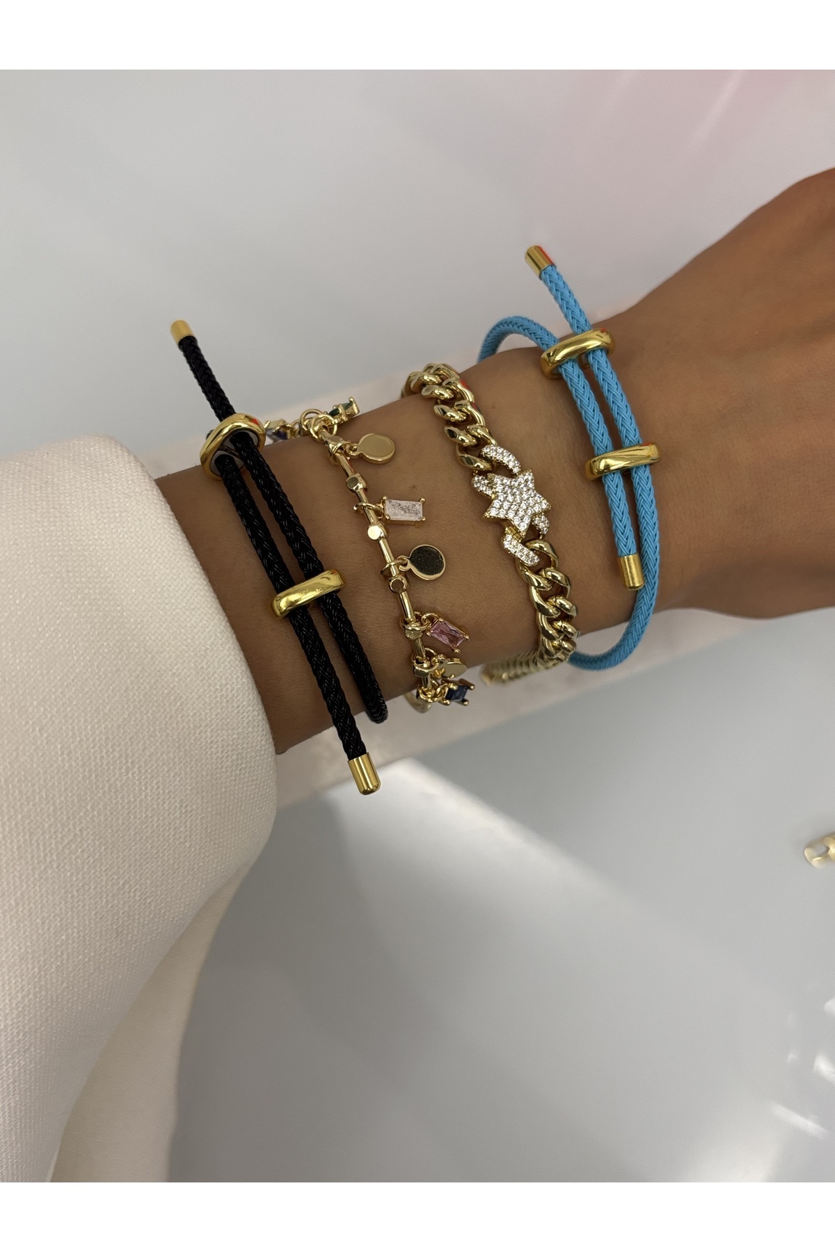 Çelik Renkli Tasarım İp Bileklikler Çelik Renkli Tasarım İp Bileklikler Tasarım Deri Bileklik 14k Detaylı تک سایز