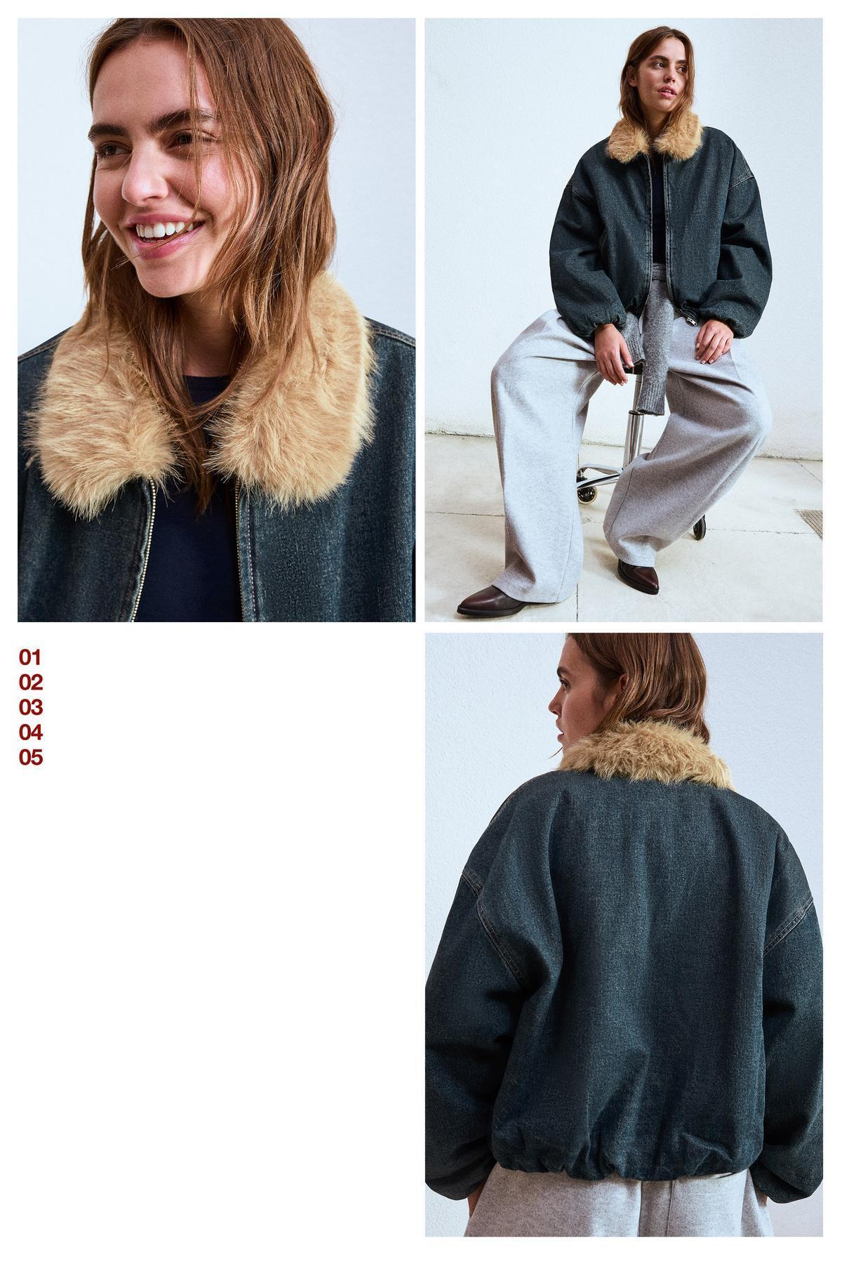 Suni kürk yakalı denim ceket Suni kürk yakalı denim ceket 00040779206598074 2XS