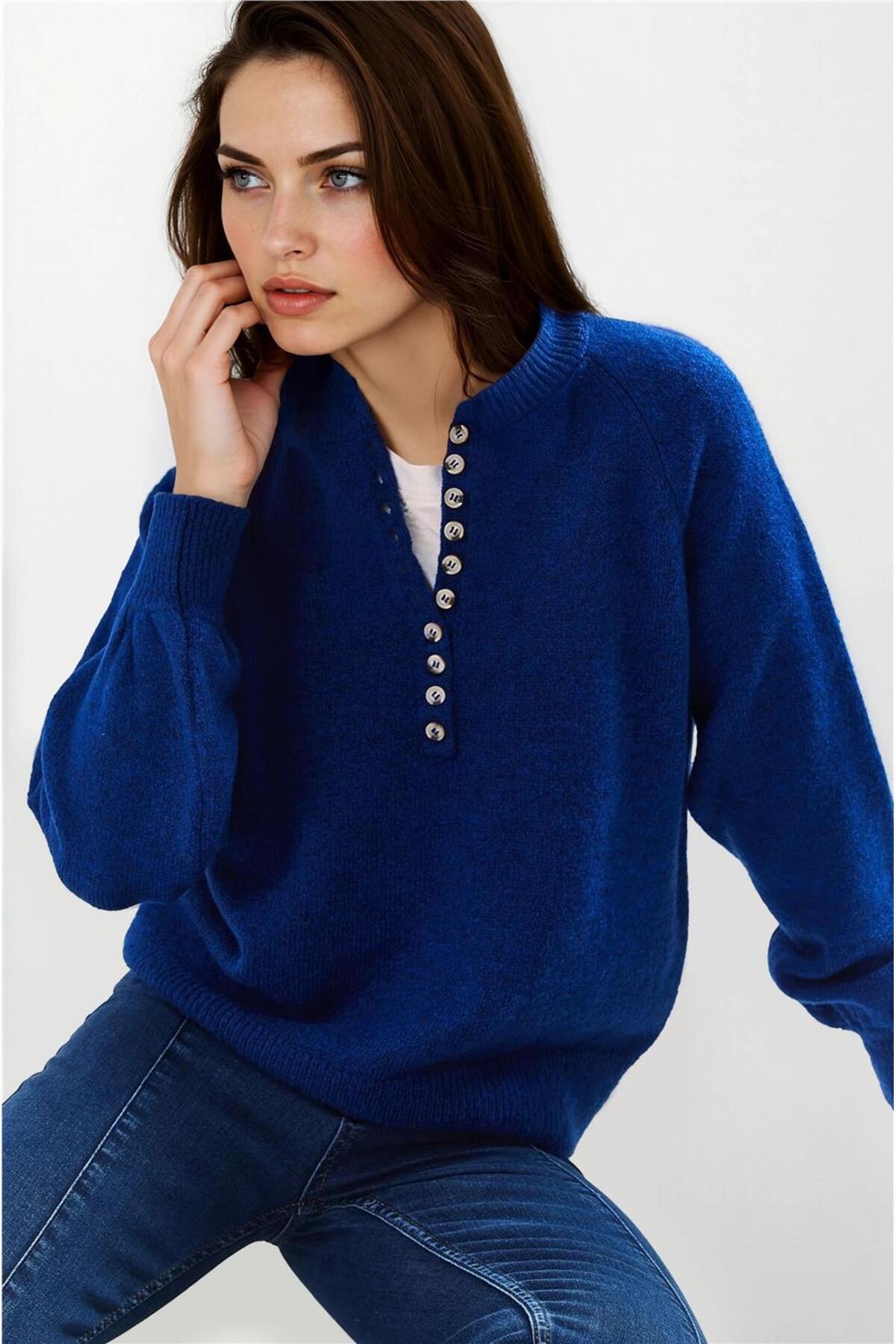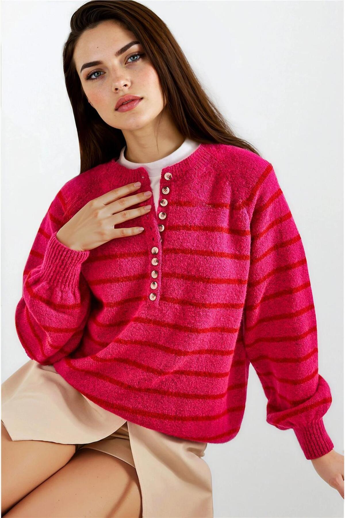Krem İlikli Balıkçı Yaka Çizgili Triko Kazak Krem İlikli Balıkçı Yaka Çizgili Triko Kazak BL-1005 Standart