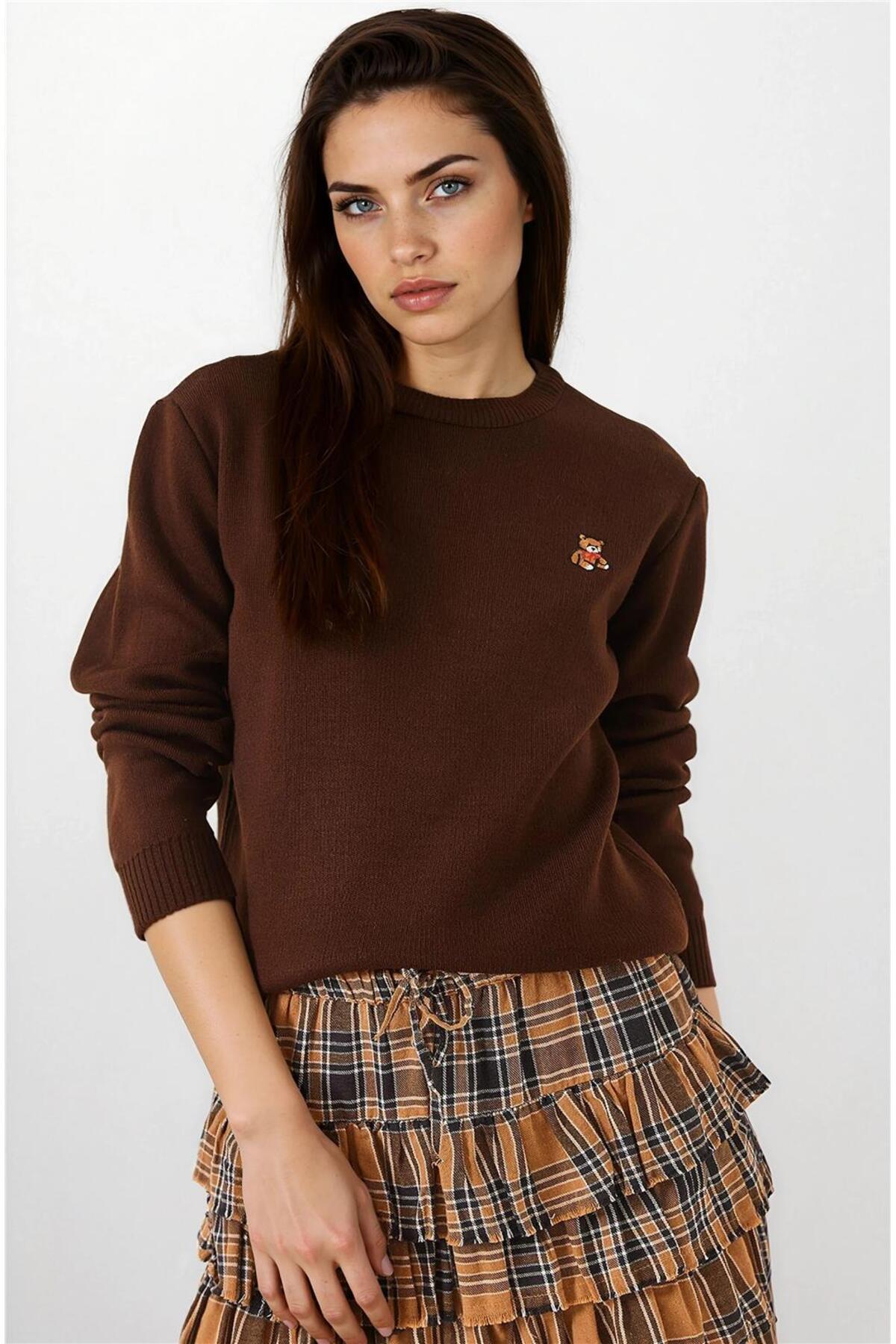 Pembe Yuvarlak Yaka Desenli Uzun Kollu Triko Kazak Pembe Yuvarlak Yaka Desenli Uzun Kollu Triko Kazak BL-1031 Standart
