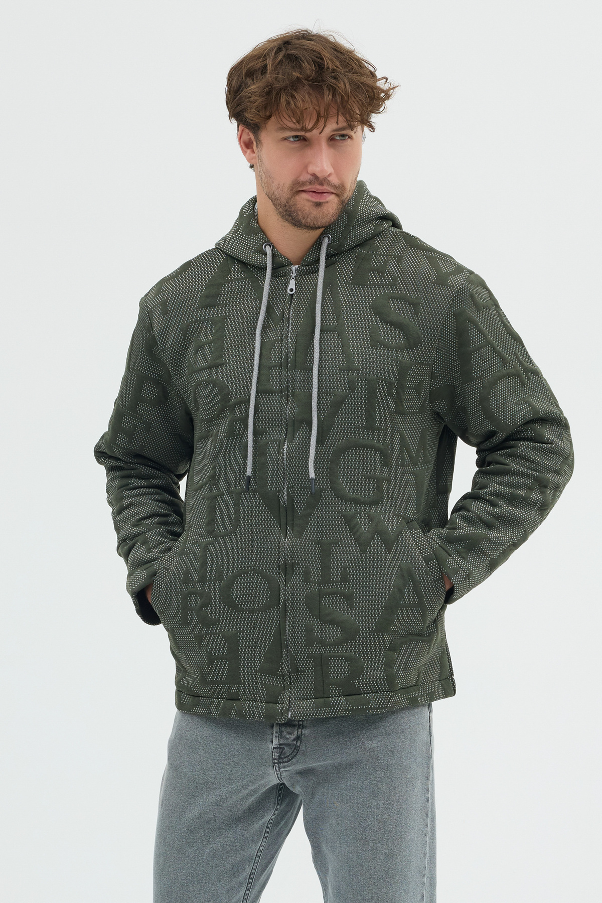 Erkek Oversize Fermuarlı Kapüşonlu Örme Harf Desenli Kalın Ceket Overshirt Erkek Oversize Fermuarlı Kapüşonlu Örme Harf Desenli Kalın Ceket Overshirt 7028 L