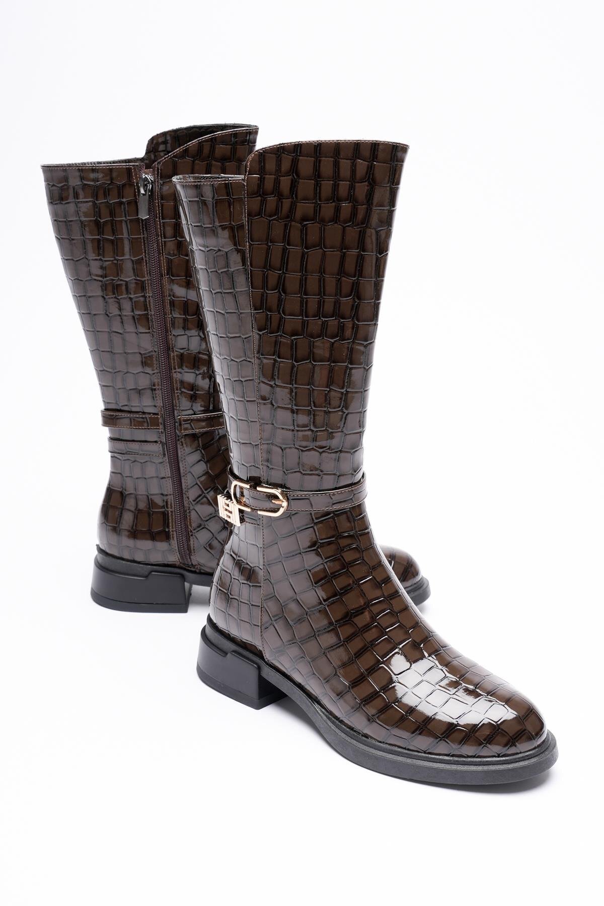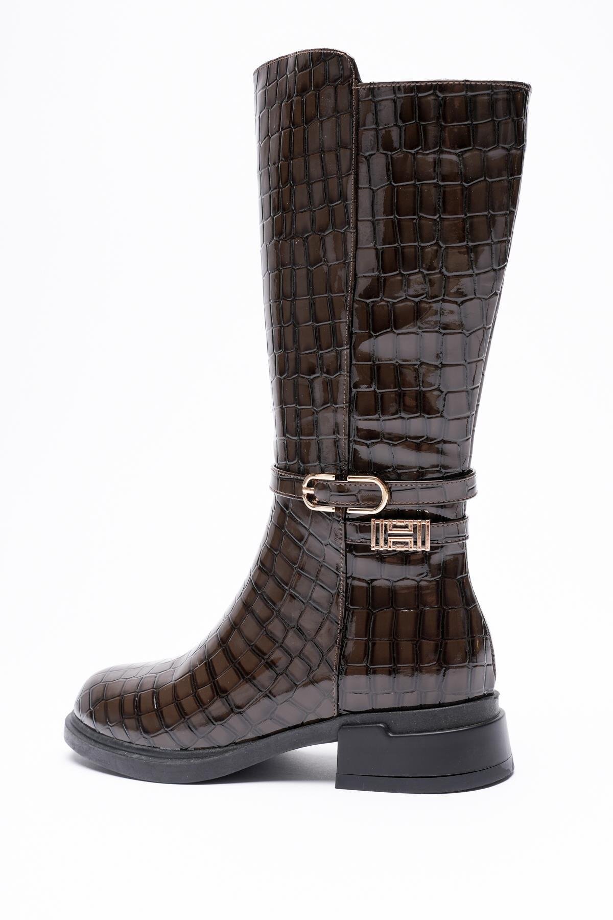 Crovina Kadın Kahve Rugan Krokodil Gold Aksesuarlı Kısa Çizme Crovina Kadın Kahve Rugan Krokodil Gold Aksesuarlı Kısa Çizme 52-18-S109 40