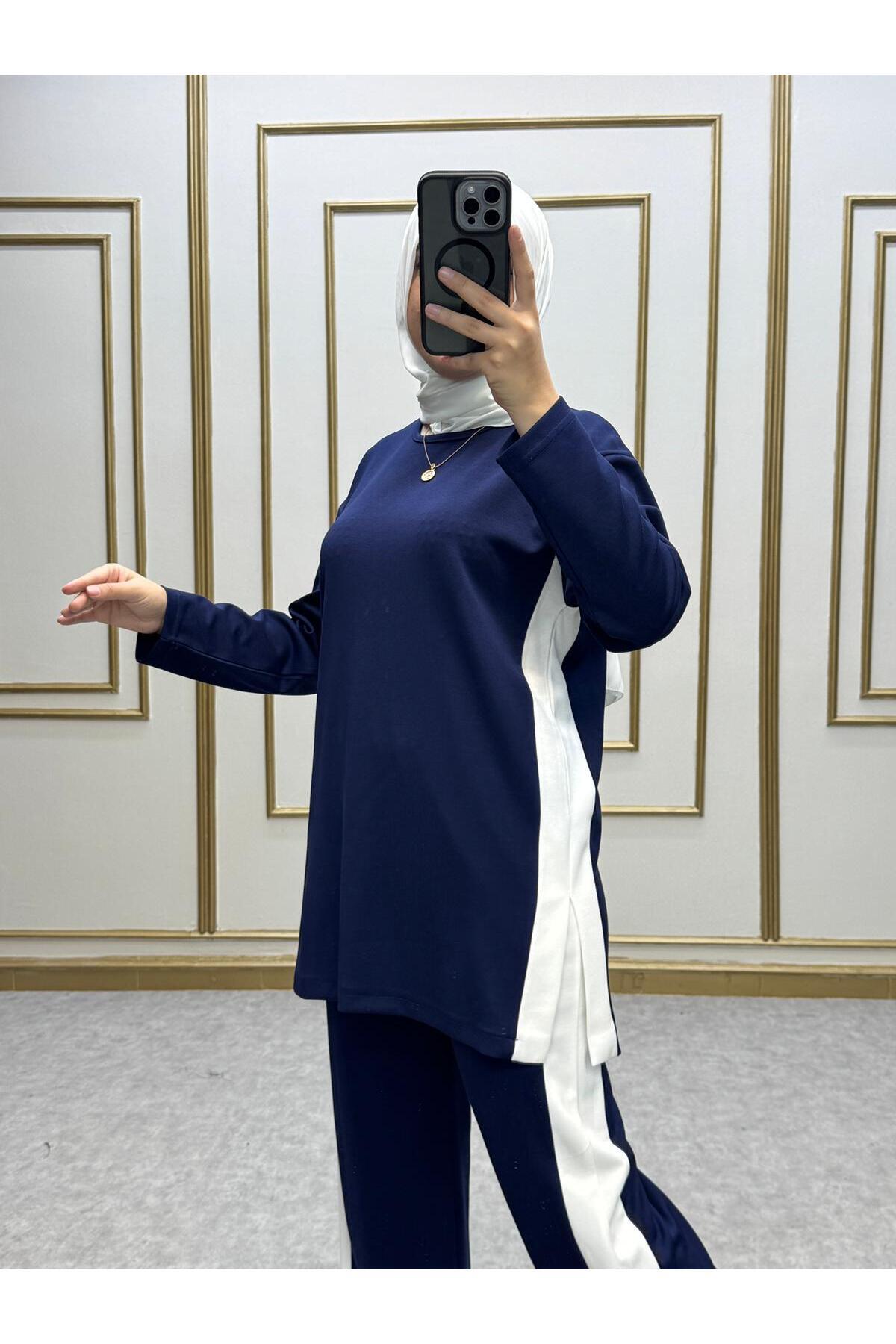 ÇİFT RENK DETAYLI PANTOLON TUNİK TAKIM ÇİFT RENK DETAYLI PANTOLON TUNİK TAKIM 1366 XL