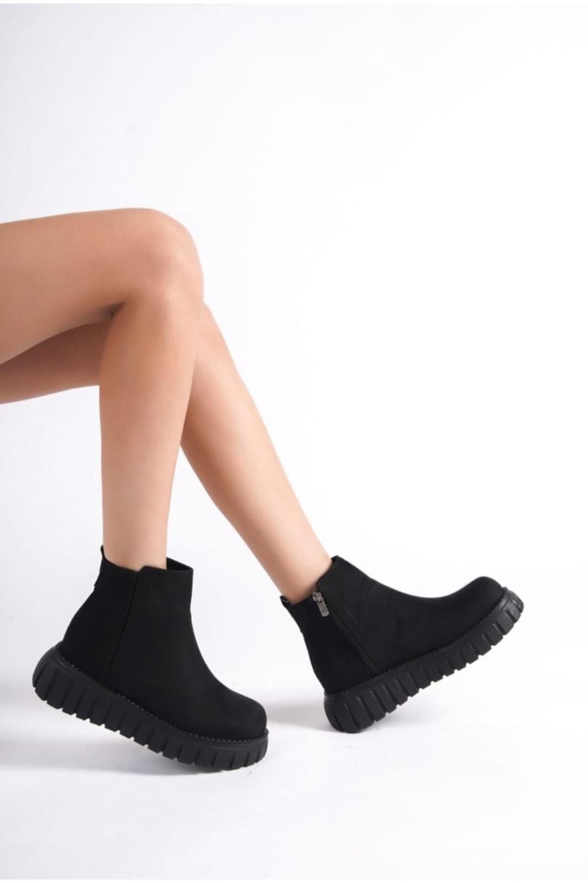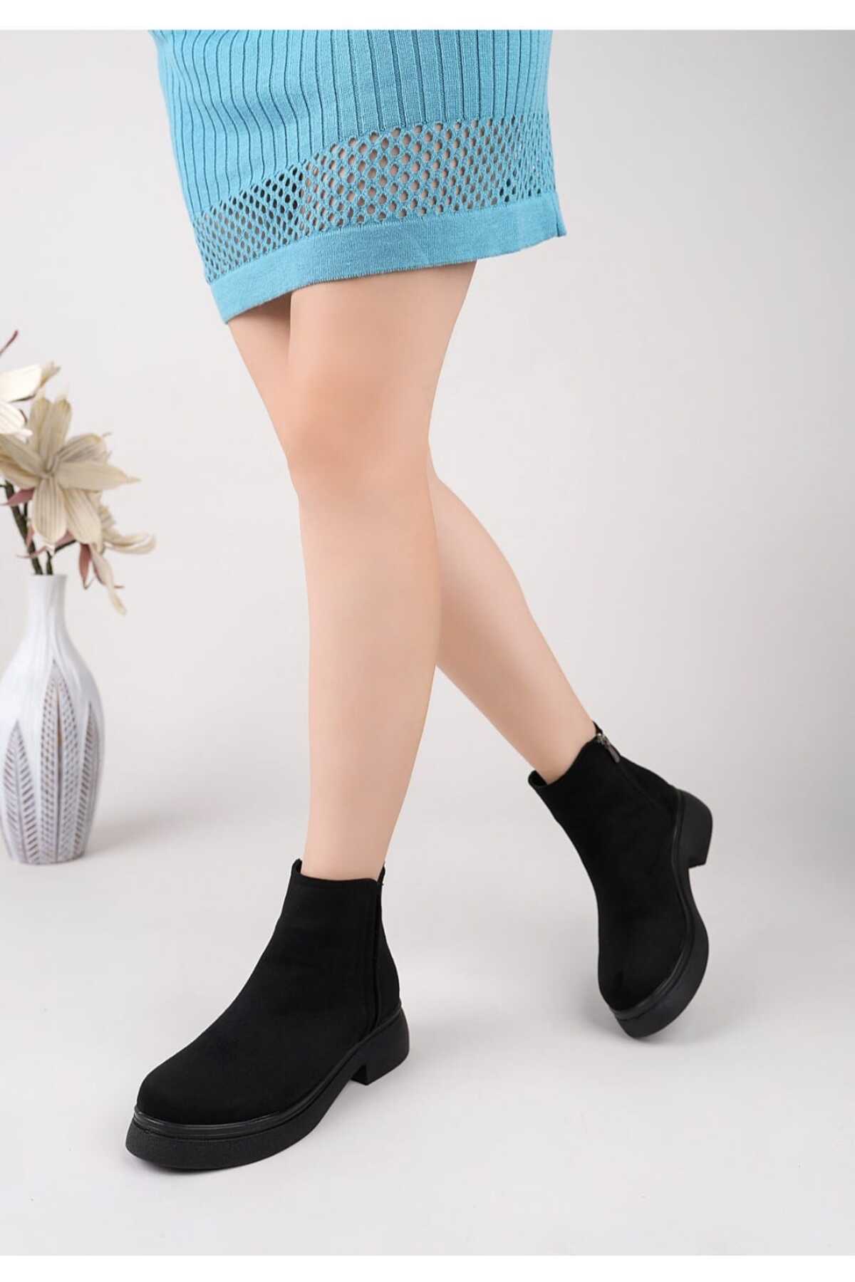 KADIN SİYAH SÜET LASTİK DETAYLI FERMUARLI BOT KADIN SİYAH SÜET LASTİK DETAYLI FERMUARLI BOT ÇİFTALTI6BOTSÜ-00001 40