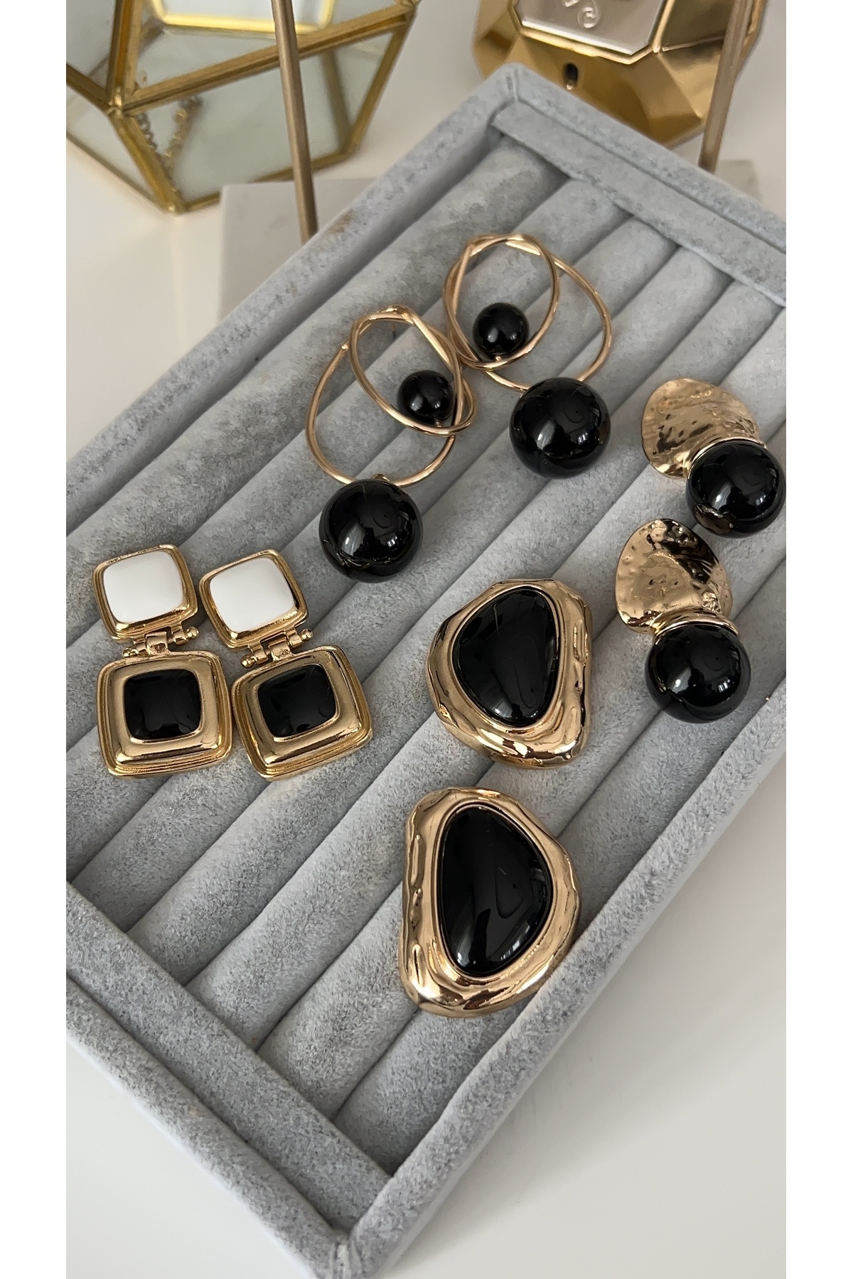 Gold Sallanan Siyah Top Detaylı Küpe Gold Sallanan Siyah Top Detaylı Küpe vb564 تک سایز