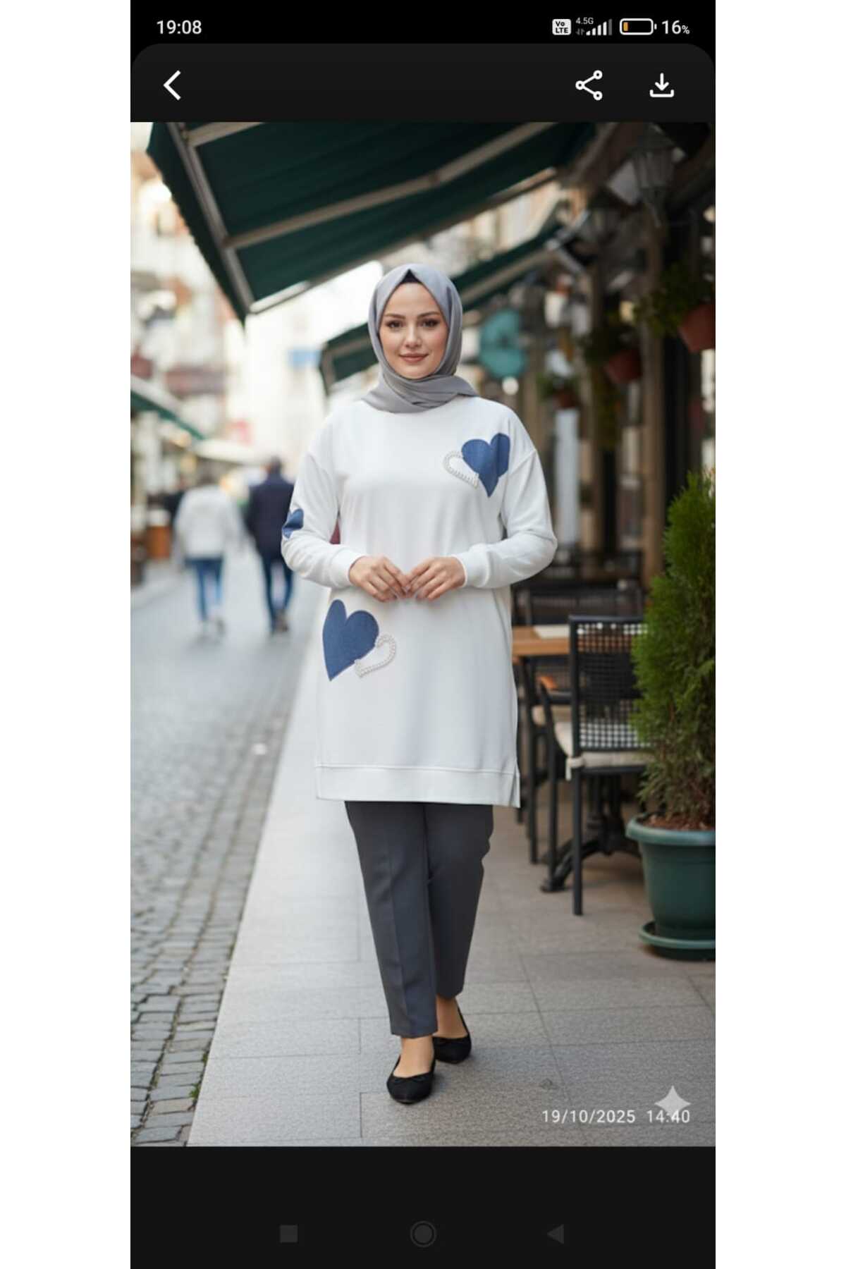 Kalp işlemeli inci detaylı tesettür tunik Kalp işlemeli inci detaylı tesettür tunik 48989 L/XL