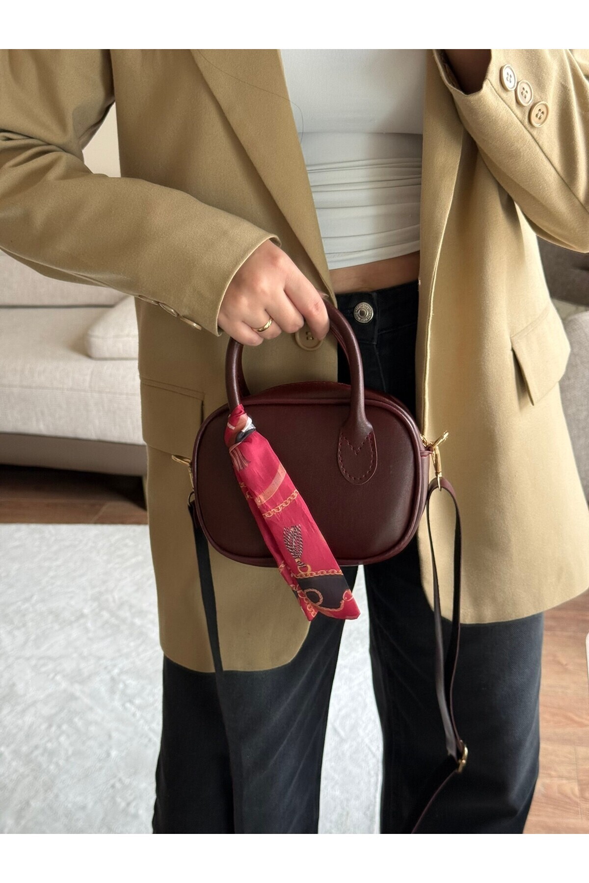 Sion Minimal Fularlı Kadın El ve Omuz Çantası Sion Minimal Fularlı Kadın El ve Omuz Çantası RRCNT100021 Standart