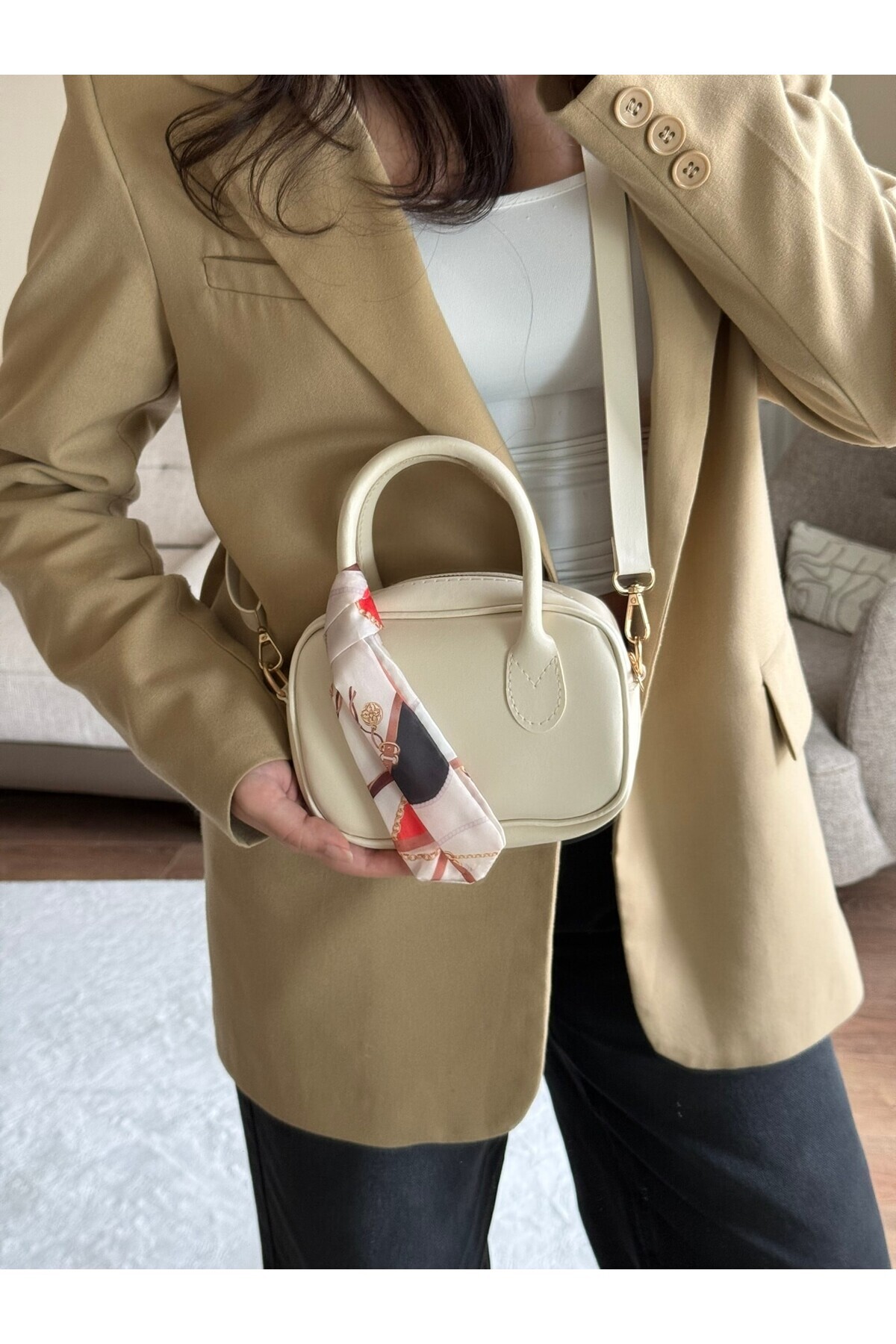 Sion Minimal Fularlı Kadın El ve Omuz Çantası Sion Minimal Fularlı Kadın El ve Omuz Çantası RRCNT100021 Standart