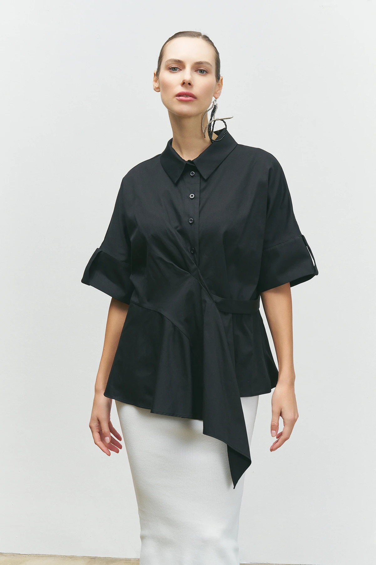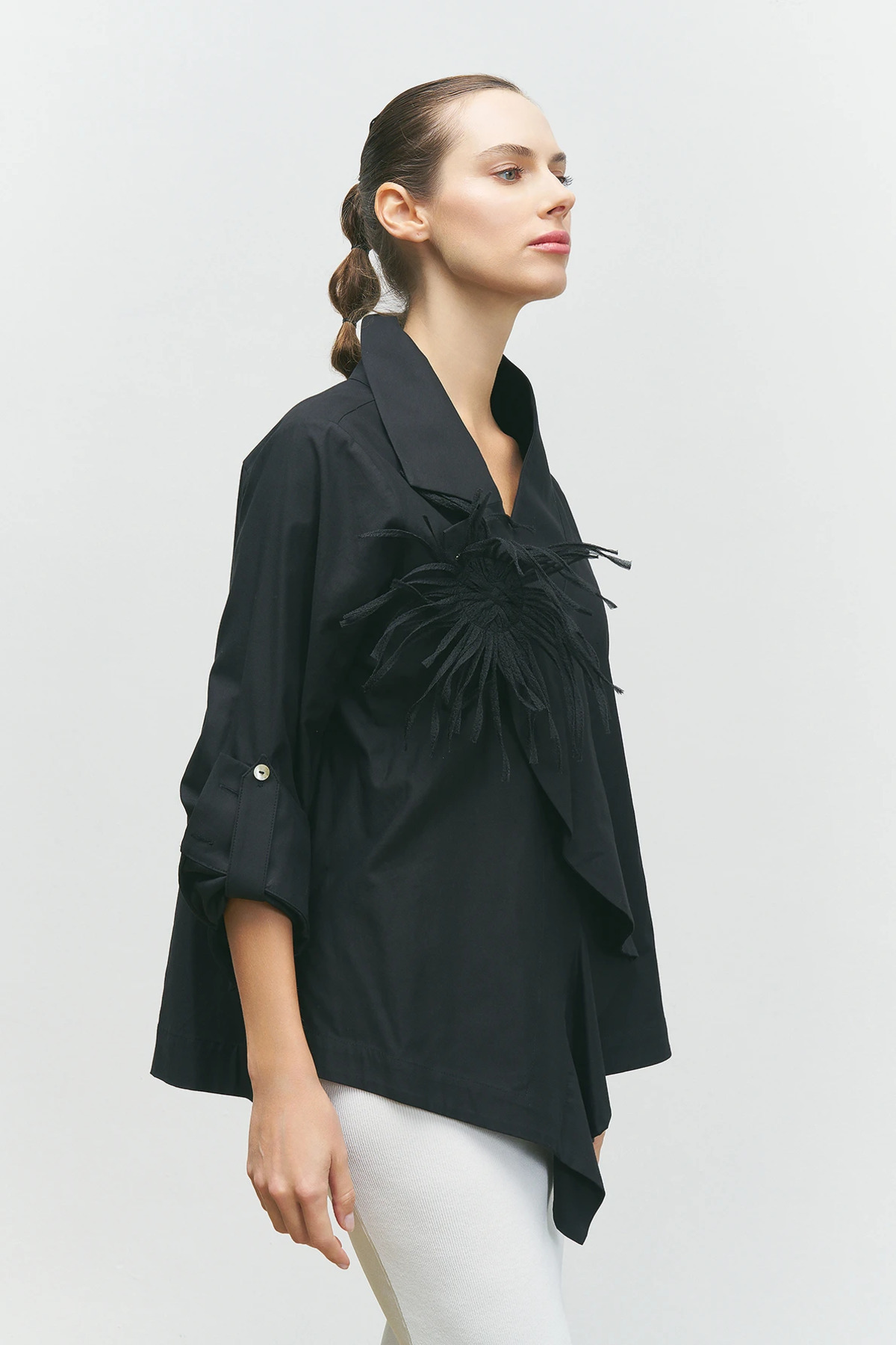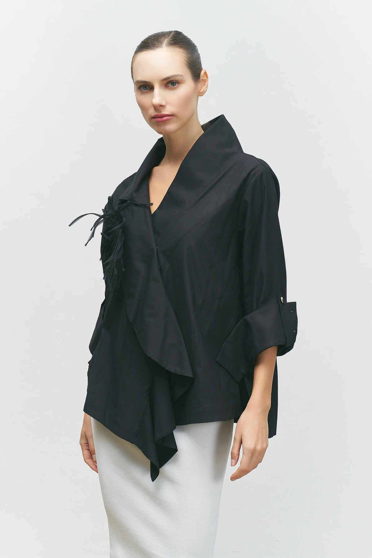 Yakası Süs Detaylı Gömlek - Siyah Yakası Süs Detaylı Gömlek - Siyah 14916 44