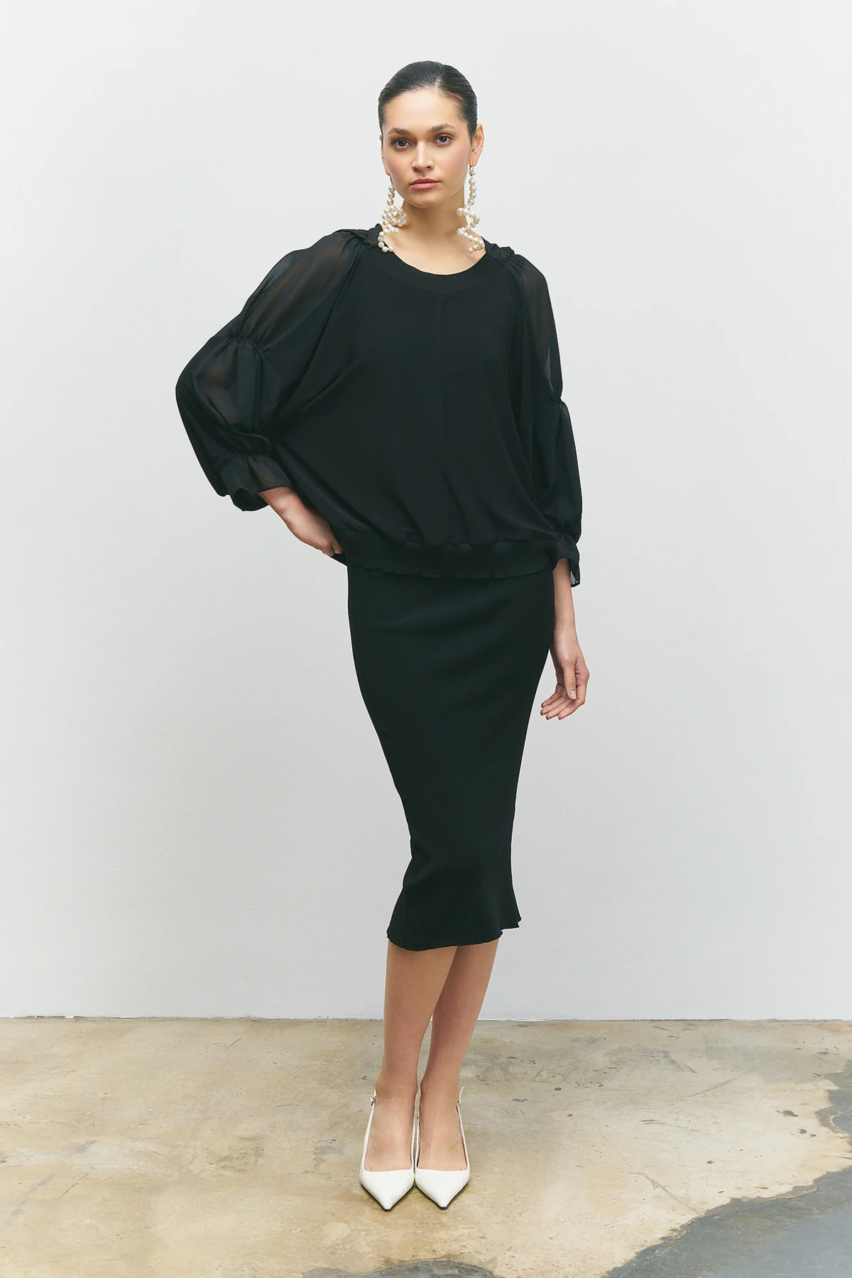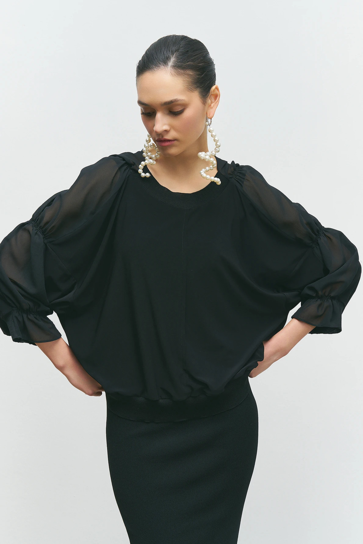 Kolları Büzgülü Bluz - Siyah Kolları Büzgülü Bluz - Siyah 15014 44