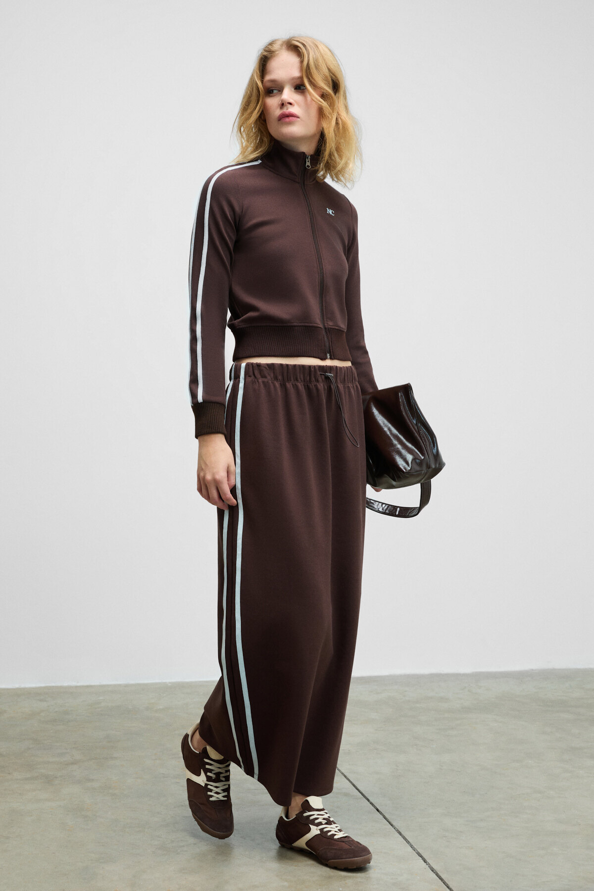 VERALIA Kadın Yanları Kontrast Renk Panelli Regular Fit Kahverengi Etek VERALIA Kadın Yanları Kontrast Renk Panelli Regular Fit Kahverengi Etek VERALIA01012025 XL