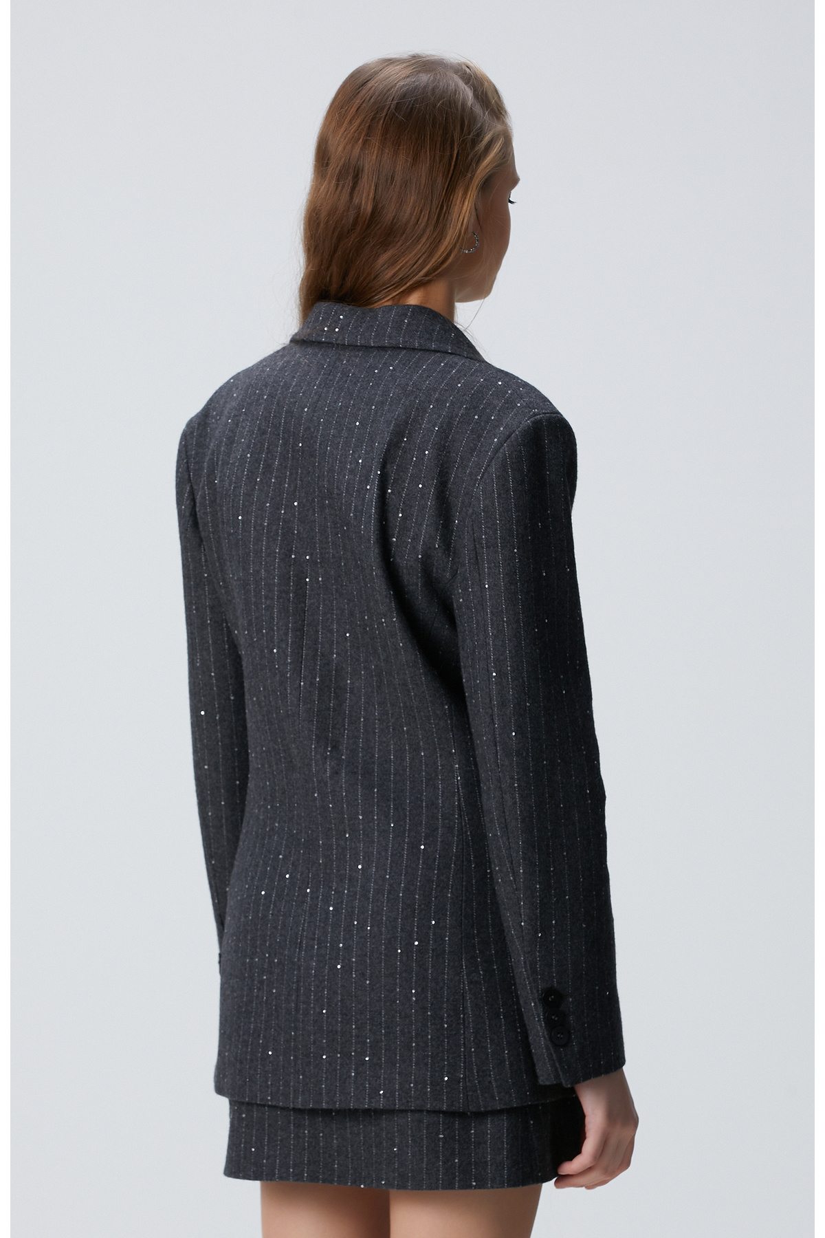 Koyu Gri Melanj Çizgili Yün Karışımlı Ceket Koyu Gri Melanj Çizgili Yün Karışımlı Ceket 1096379 44