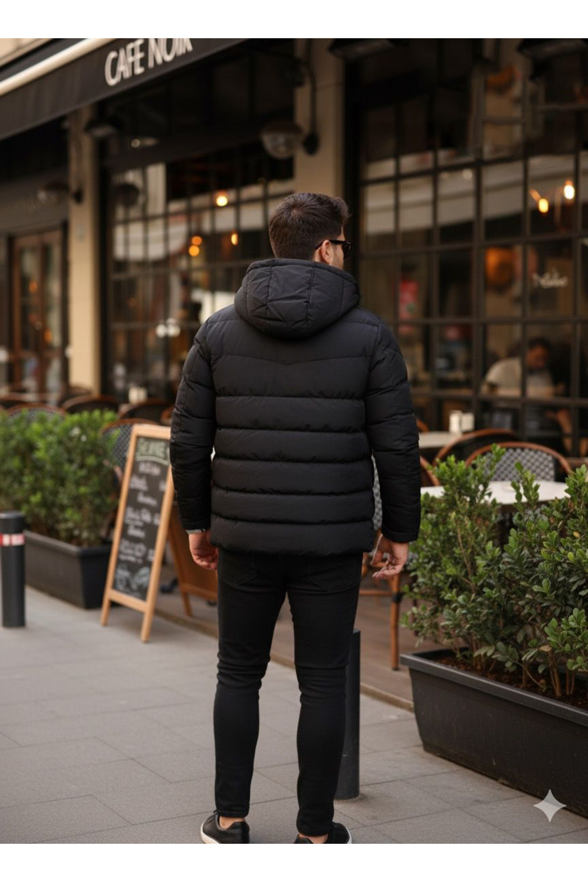Erkek Su Ve Rüzgar Geçirmez İçi Tay Tüyü Siyah Şişme Kapüşonlu Şişme Mont Kaban Ceket Erkek Su Ve Rüzgar Geçirmez İçi Tay Tüyü Siyah Şişme Kapüşonlu Şişme Mont Kaban Ceket cng1003 2XL