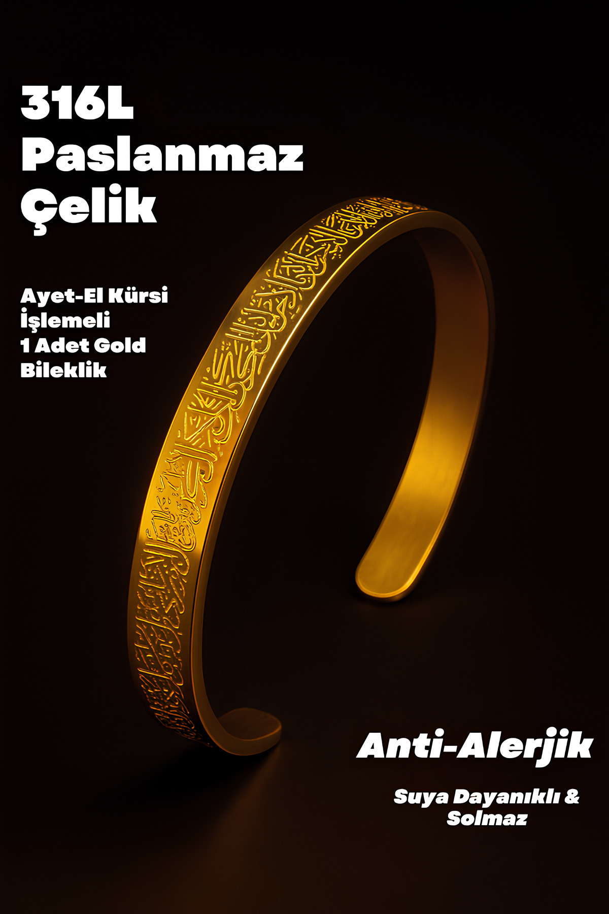 Ayetel Kürsi İşlemeli 316L Paslanmaz Çelik Bileklik Kadın Erkek Gold Gümüş Renk Anti Alerjik İslami Ayetel Kürsi İşlemeli 316L Paslanmaz Çelik Bileklik Kadın Erkek Gold Gümüş Renk Anti Alerjik İslami STY00091 Standart
