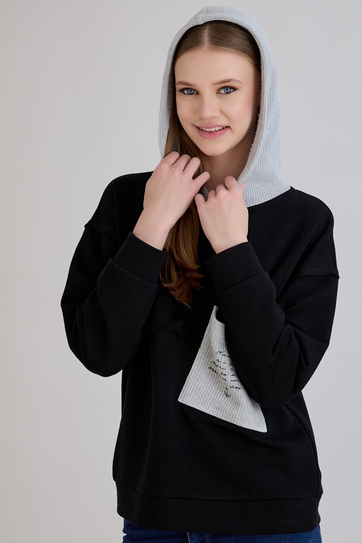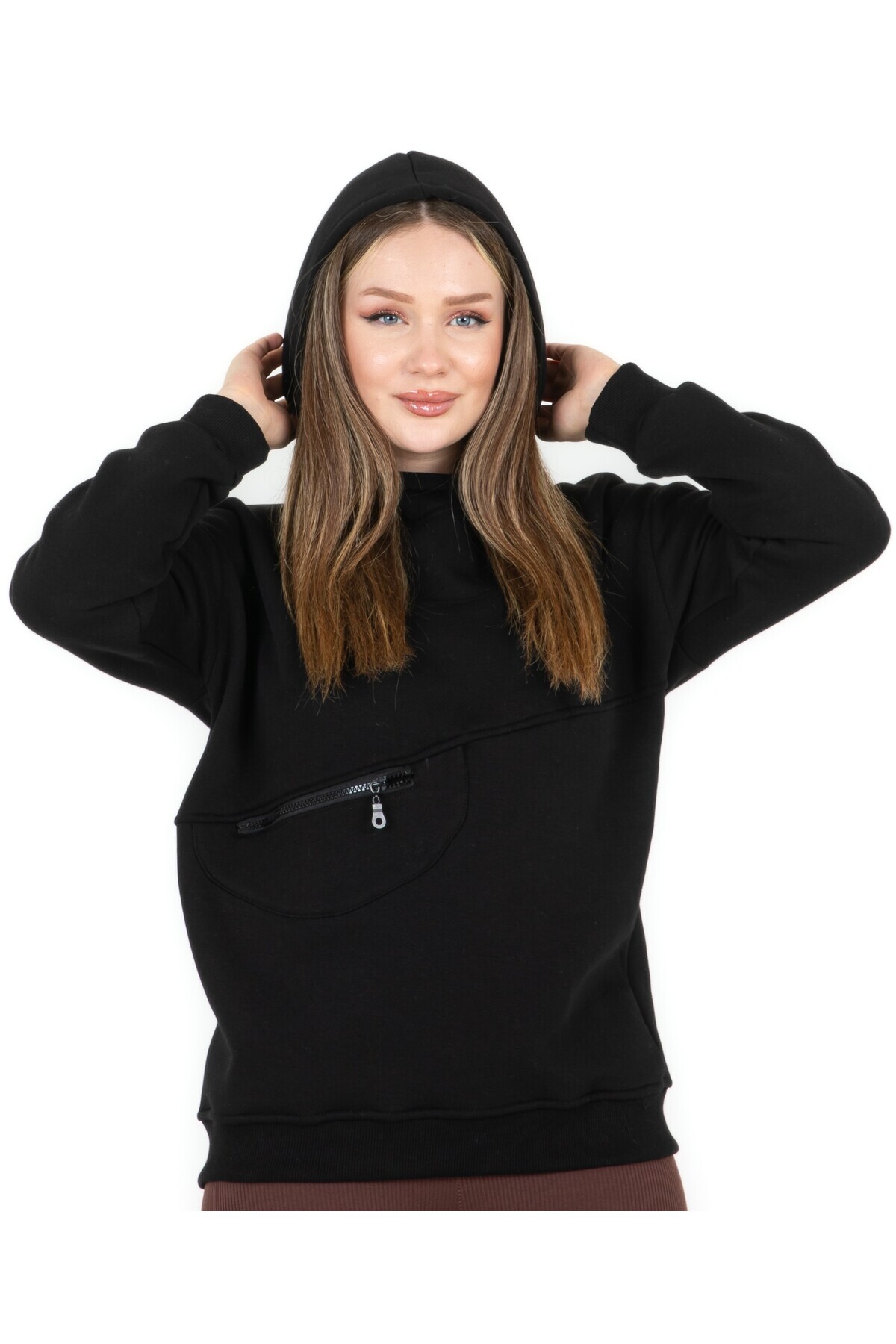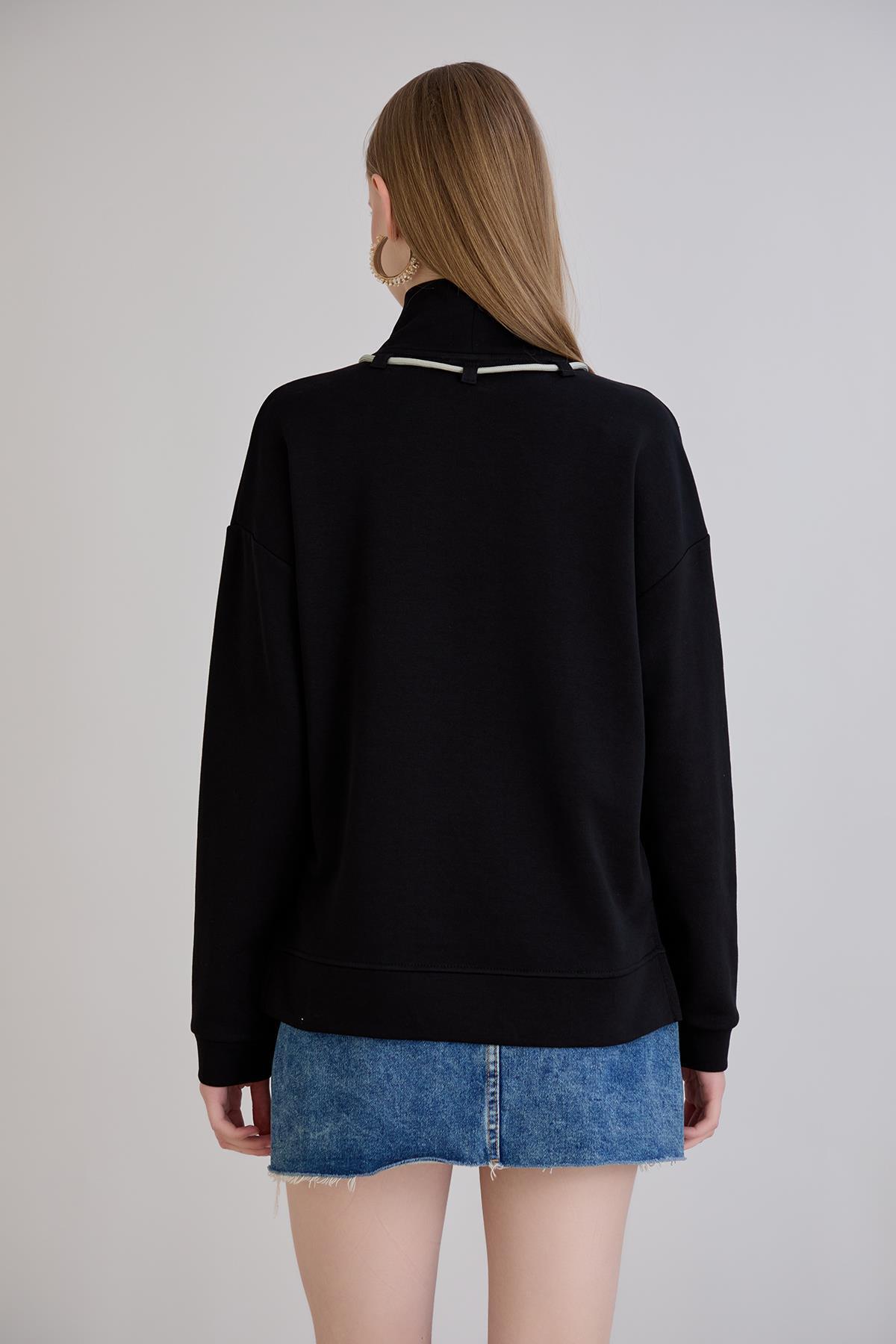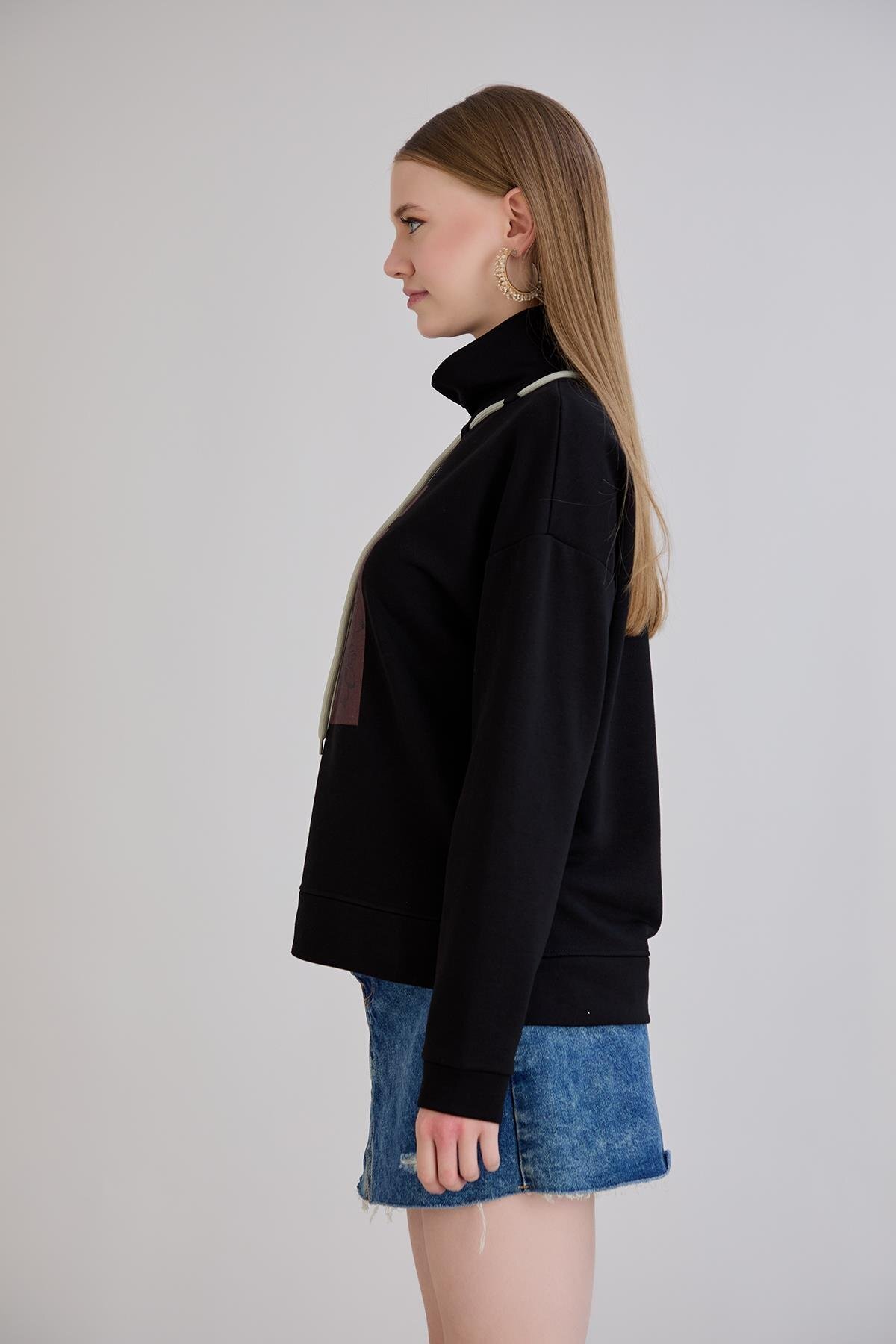 Kadın Büzgülü Balıkçı Yaka Arkası Uzun Midi Boy Balıkçı Kordonlu Siyah Sweatshirt Kadın Büzgülü Balıkçı Yaka Arkası Uzun Midi Boy Balıkçı Kordonlu Siyah Sweatshirt 5082 XL