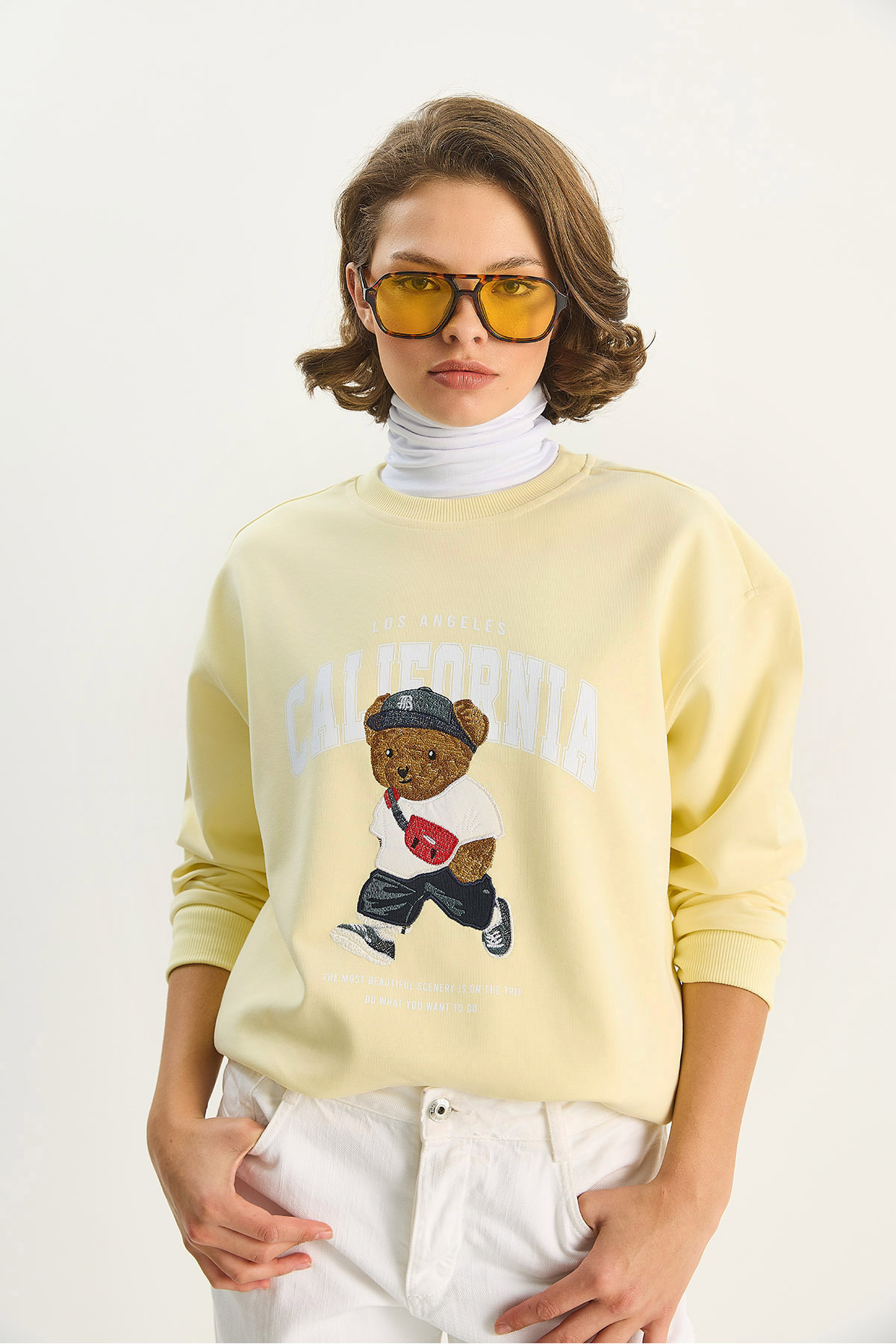 Kadın Bisiklet Yaka Teddy Nakışlı Baskı Detaylı Relaxed Sweatshirt 10418 60283695 Kadın Bisiklet Yaka Teddy Nakışlı Baskı Detaylı Relaxed Sweatshirt 10418 60283695 L