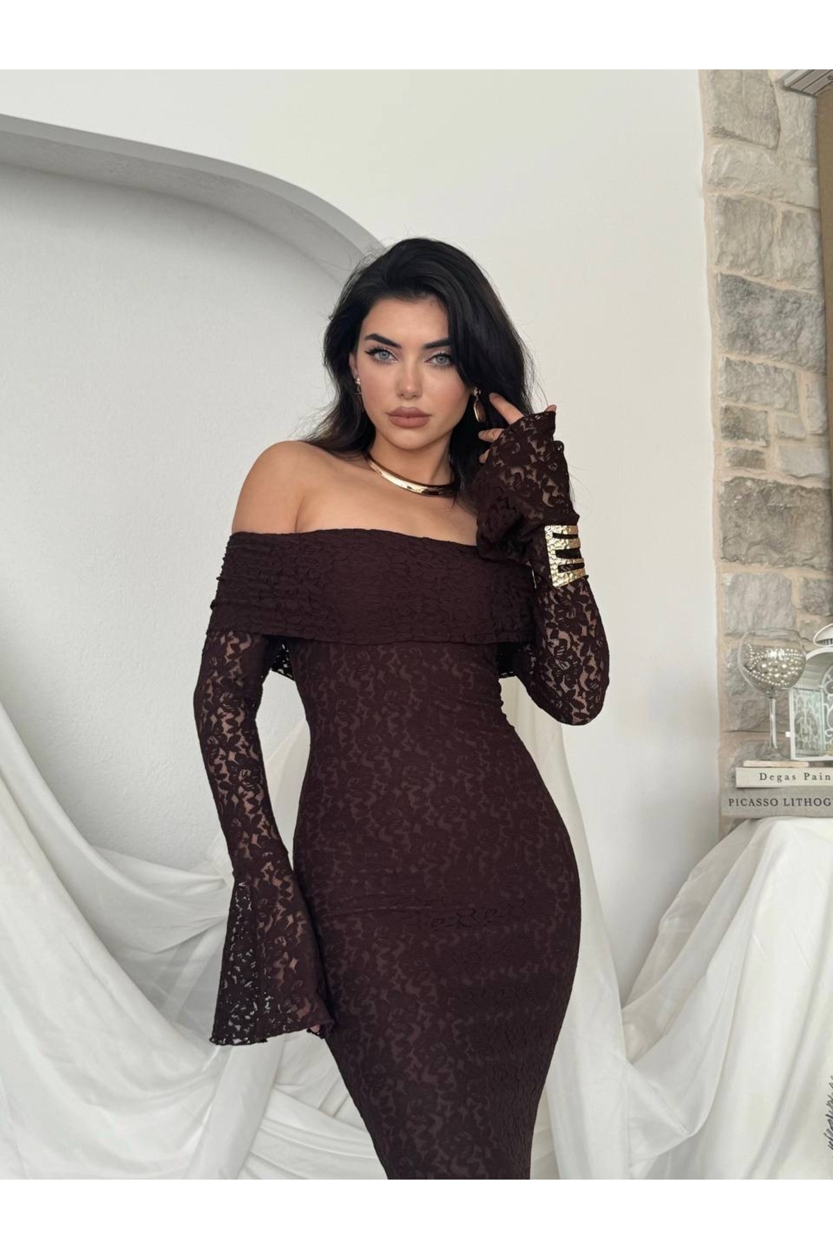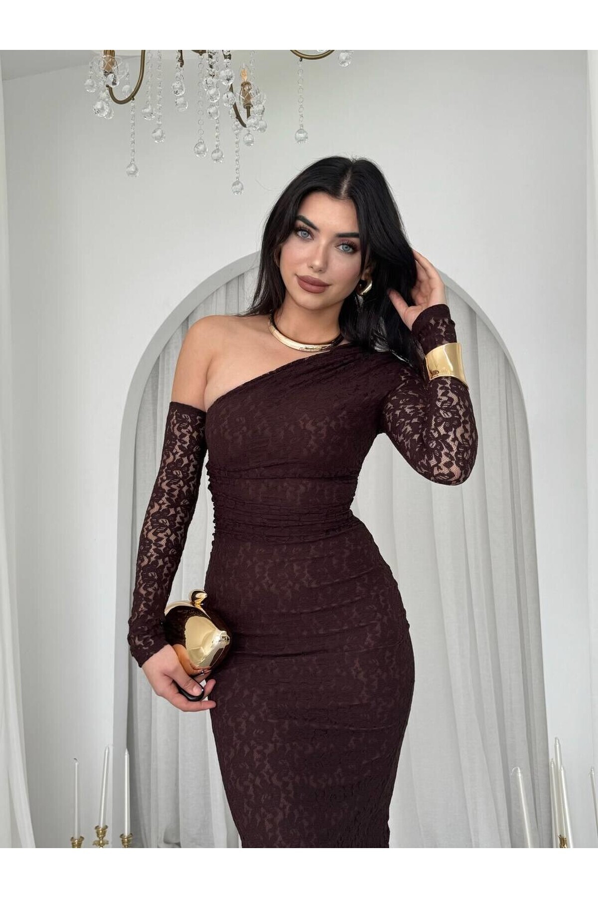 Tek Omuz Detaylı Premium Dantel Elbise Tek Omuz Detaylı Premium Dantel Elbise JD26DNTL01 L