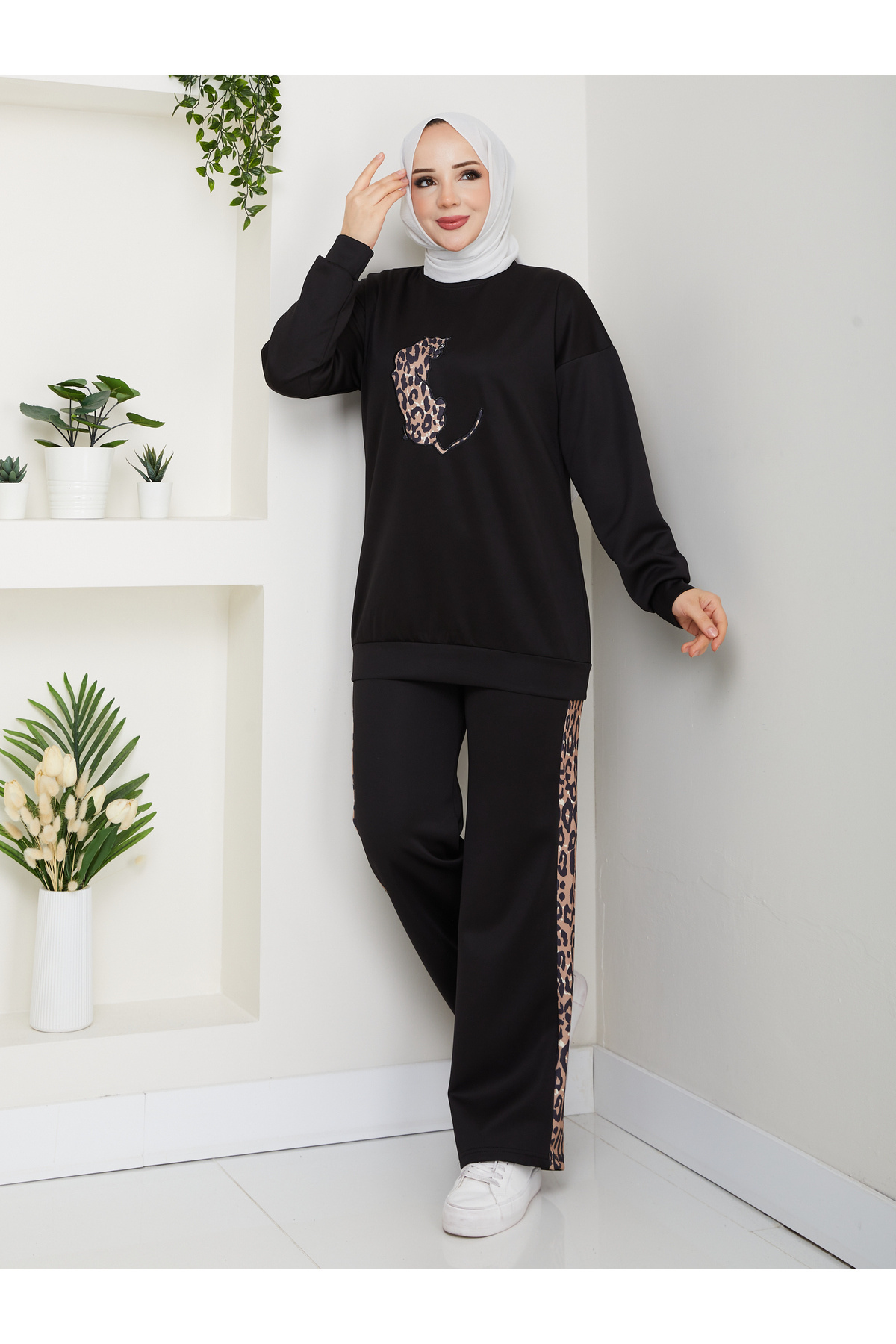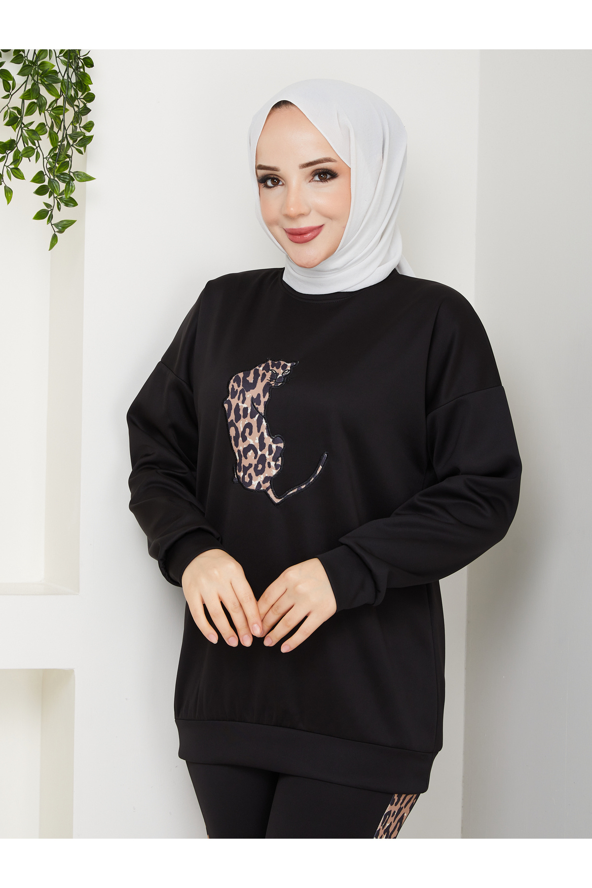 Leopar Baskılı Sweatshirt Eşofman Takımı Leopar Baskılı Sweatshirt Eşofman Takımı 2010252 2XL