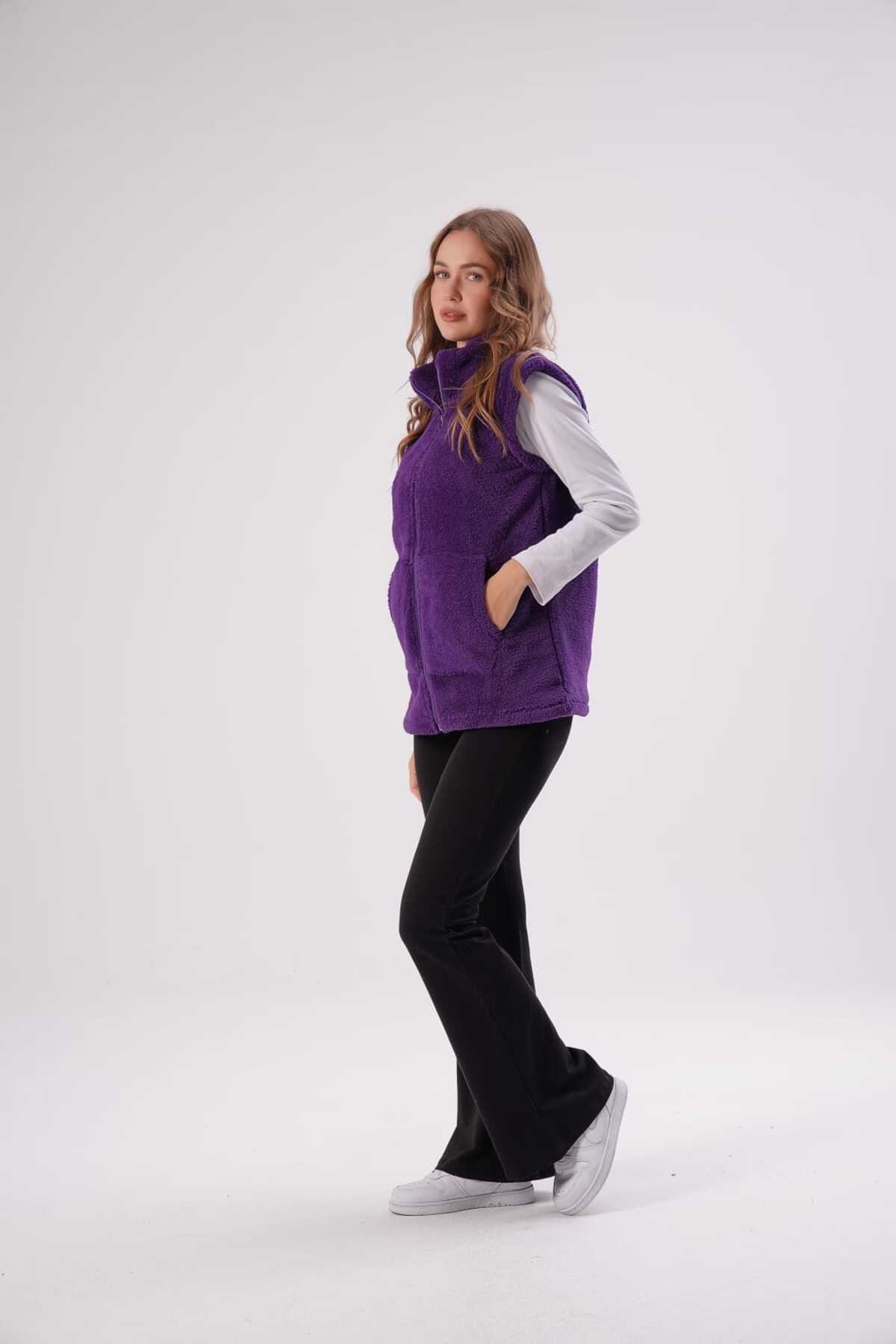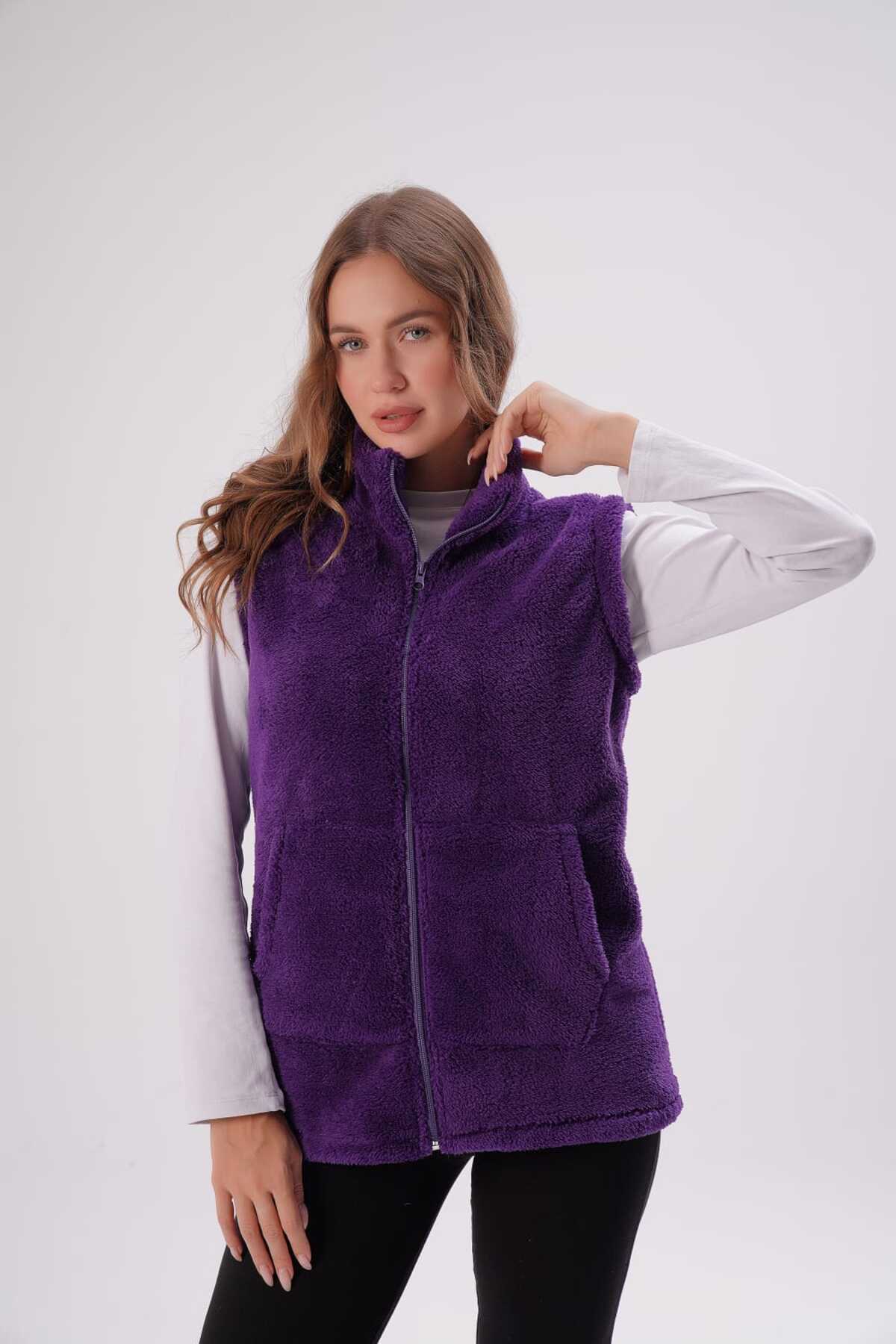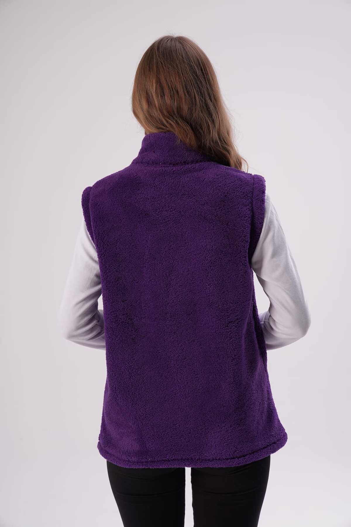 Kadın Mor Dik Yaka Peluş Yelek Kadın Mor Dik Yaka Peluş Yelek 80004 4XL