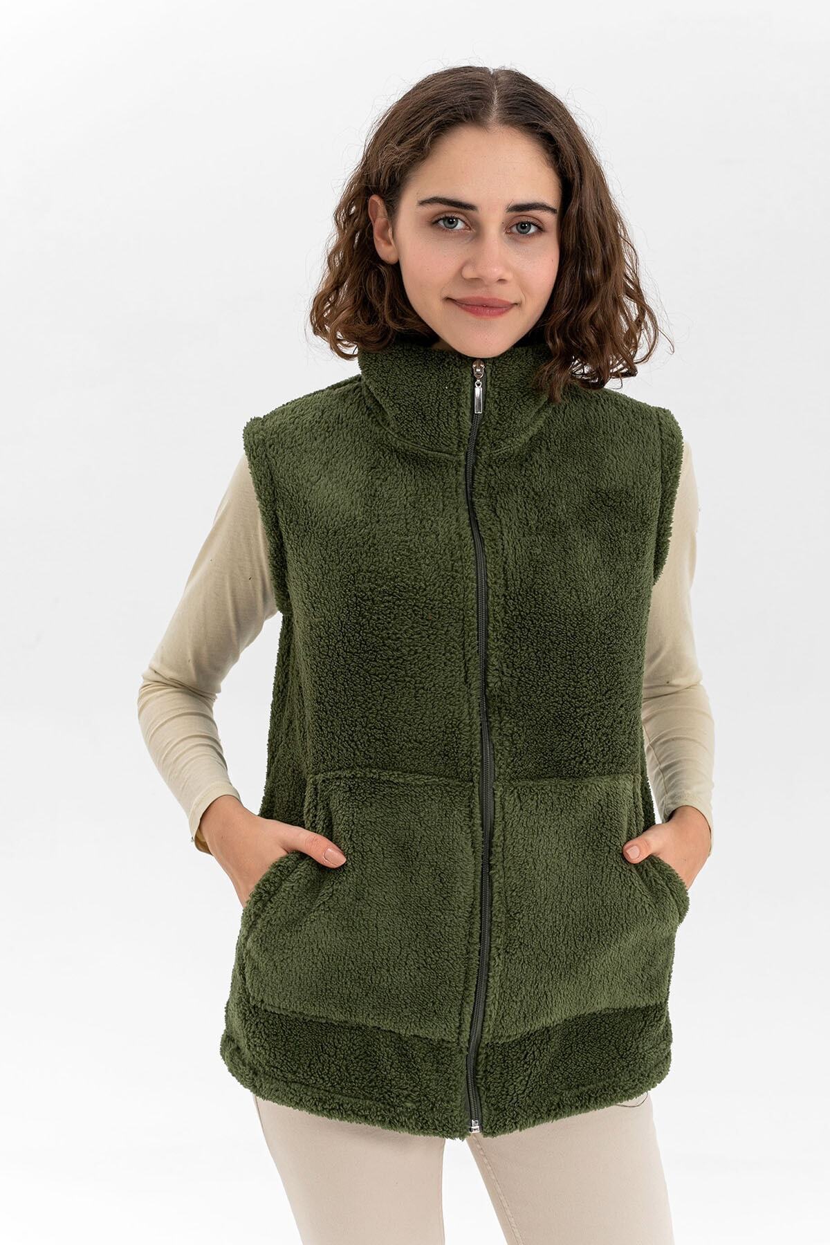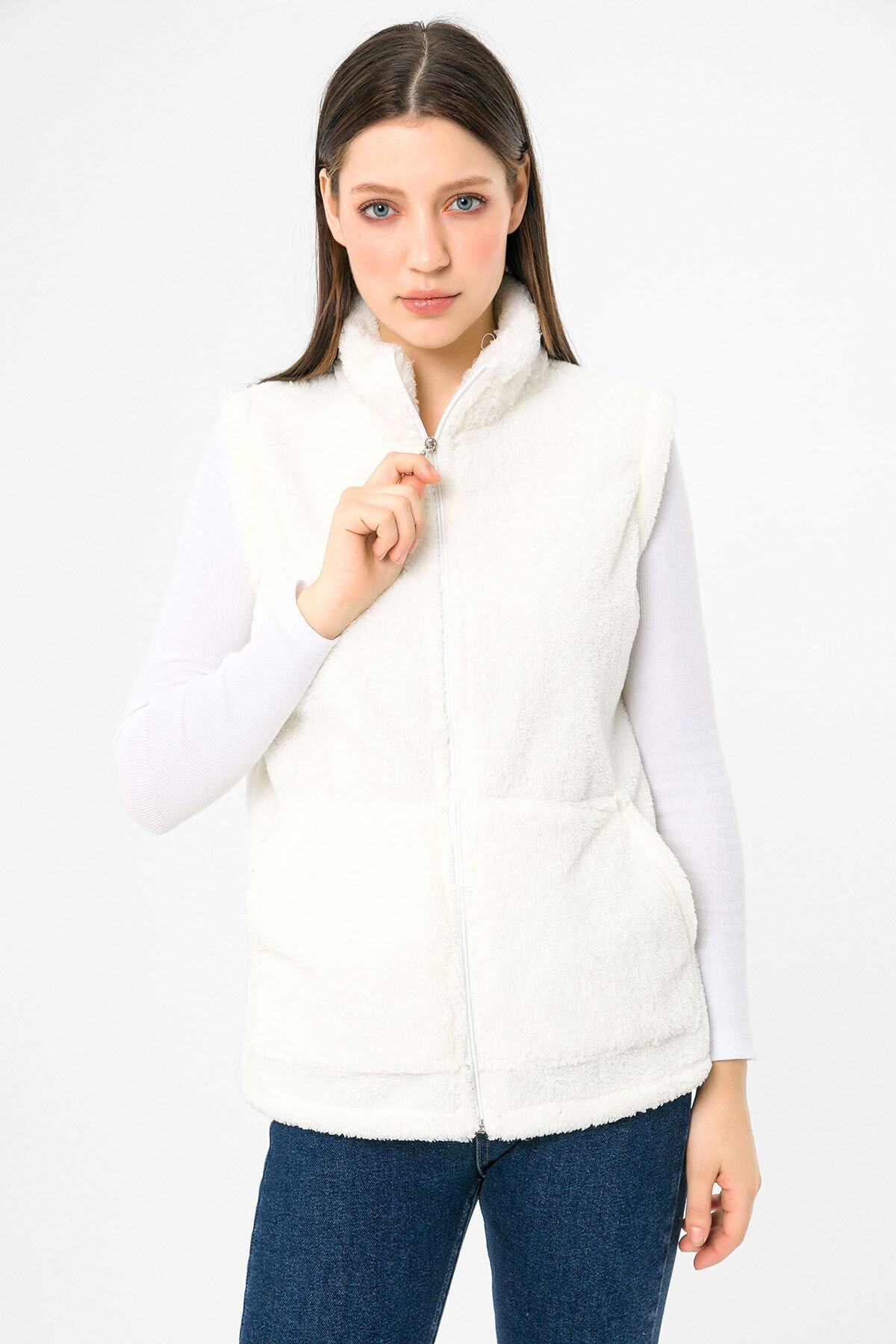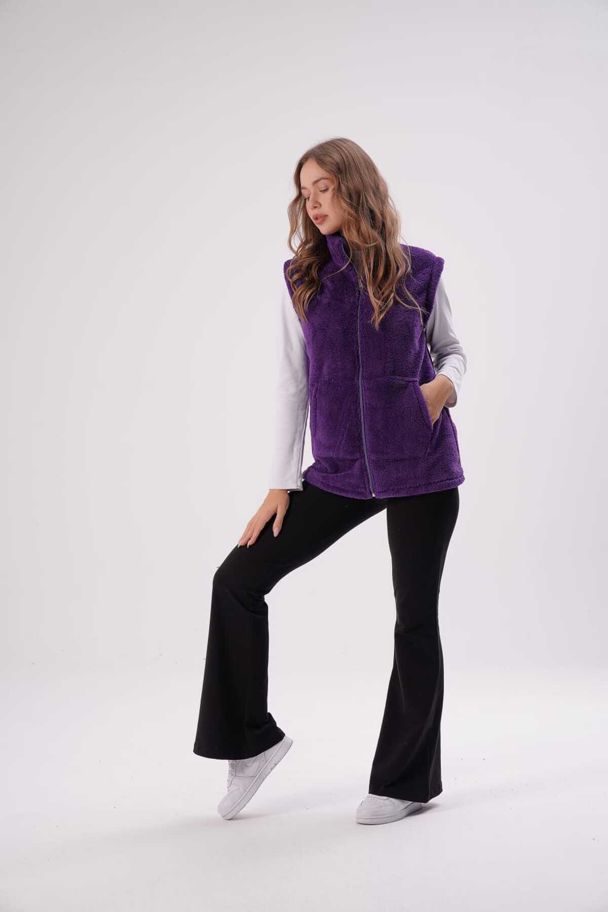 Kadın Mor Dik Yaka Peluş Yelek Kadın Mor Dik Yaka Peluş Yelek 80004 4XL