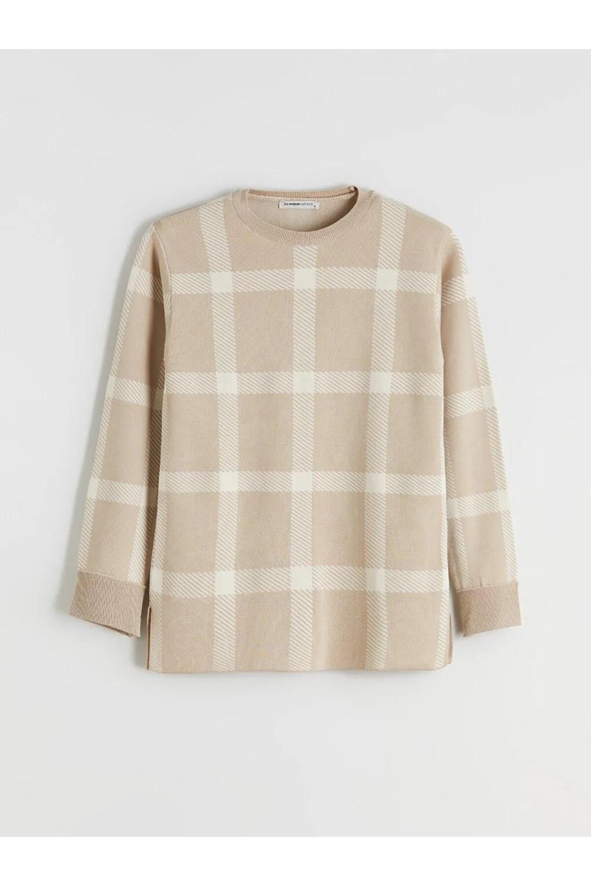 Bisiklet Yaka Ekose Kadın Triko Kazak (W5) Bisiklet Yaka Ekose Kadın Triko Kazak (W5) W5FM25Z8 4XL