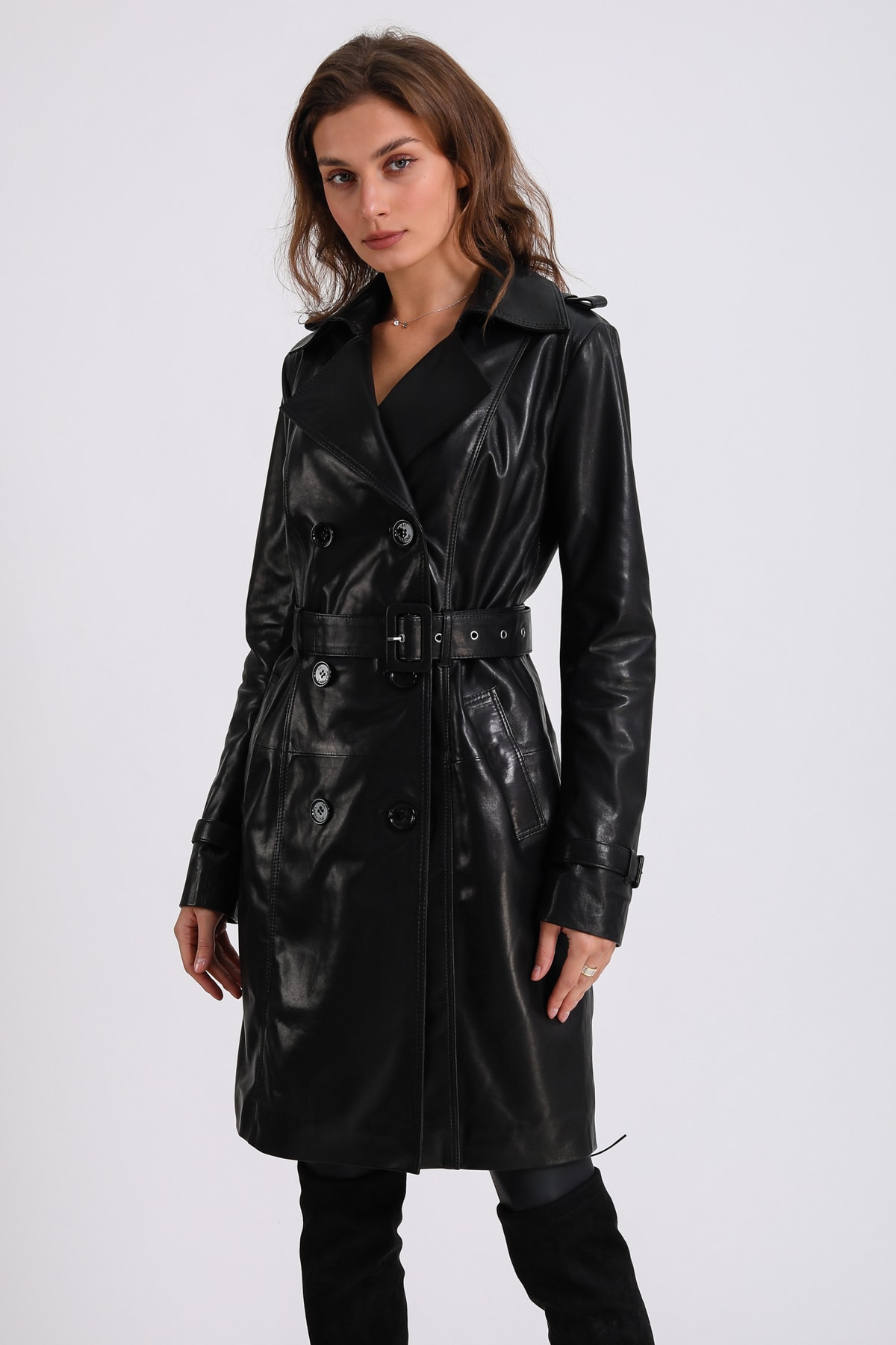 Siyah Beyaz Kürk İçlikli Hakiki Deri Kaban Siyah Beyaz Kürk İçlikli Hakiki Deri Kaban K-1080 2XL