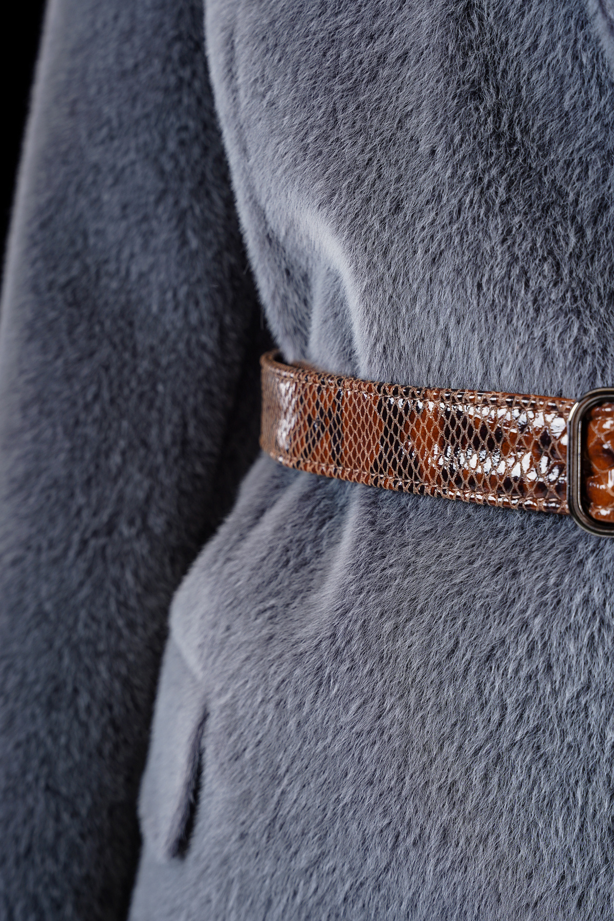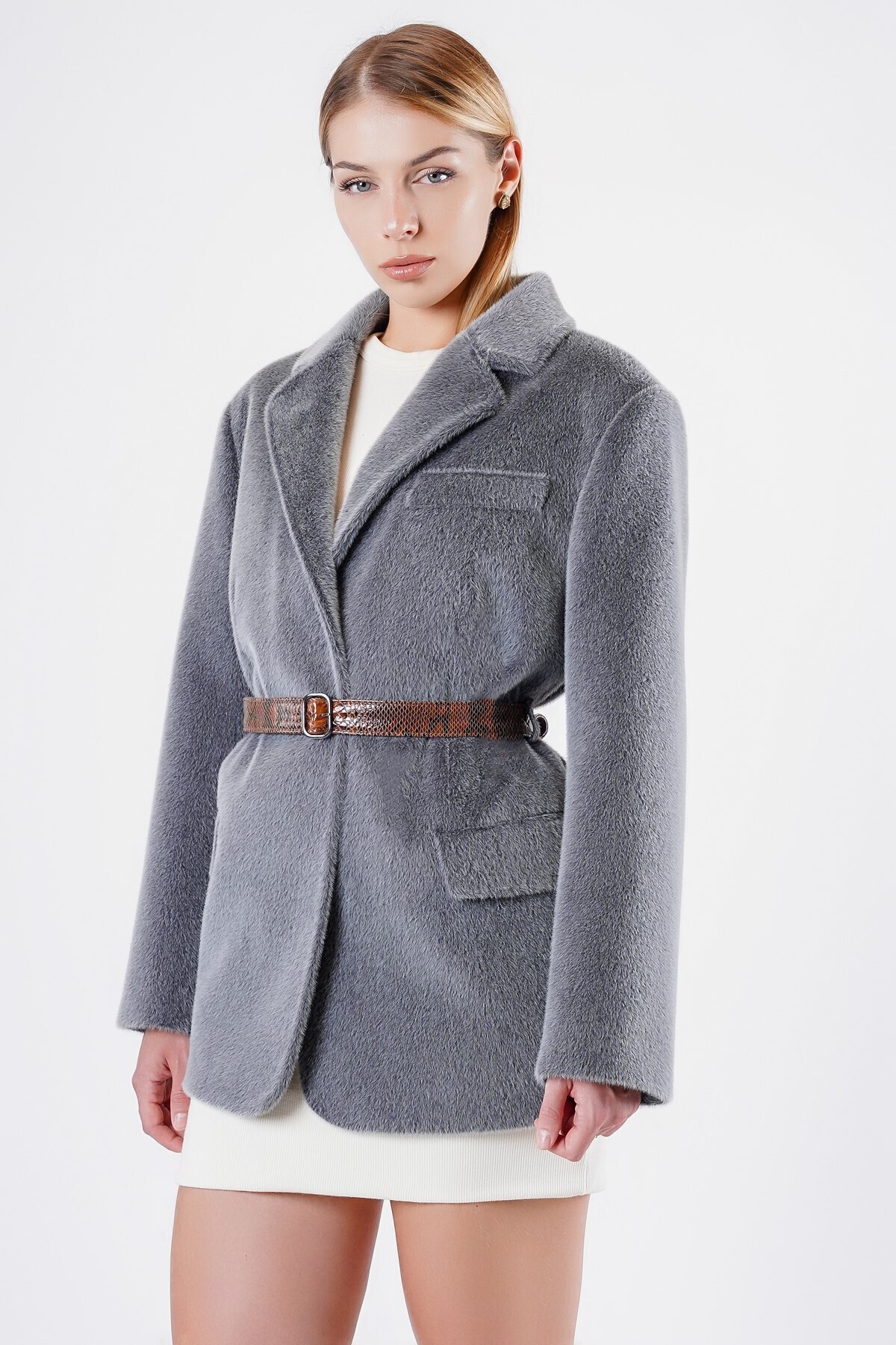 Açık Mavi Hakiki Deri Aksesuarlı Yün Kaban Açık Mavi Hakiki Deri Aksesuarlı Yün Kaban A-9409 2XL