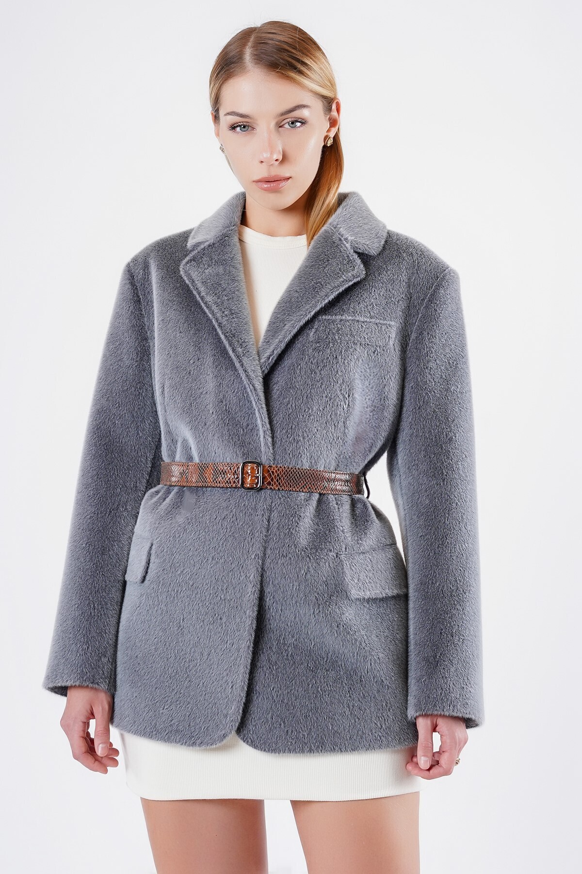 Siyah Hakiki Deri Aksesuarlı Yün Kaban Siyah Hakiki Deri Aksesuarlı Yün Kaban A-9409 2XL