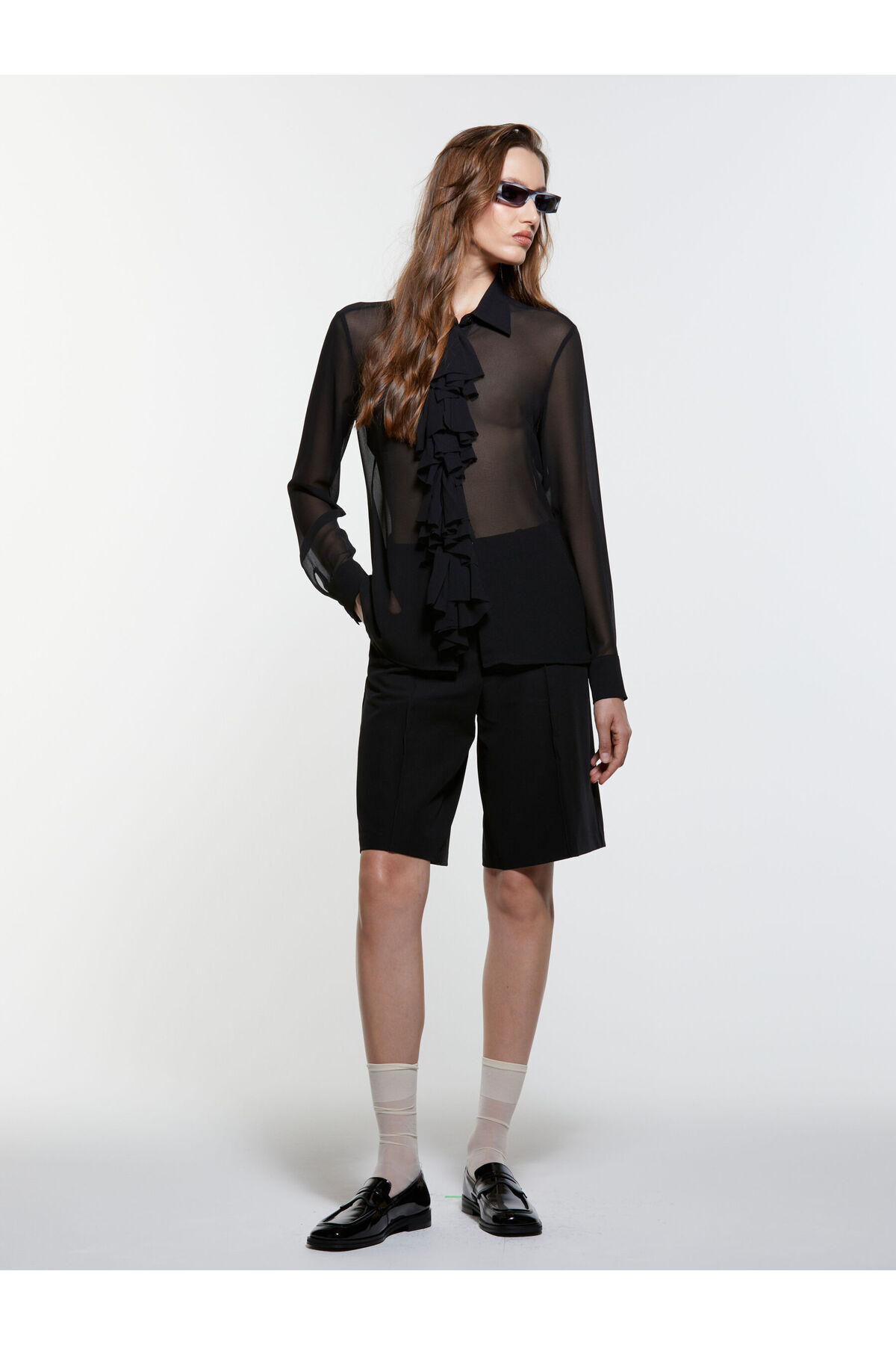 Kadın Önü Fırfır Detaylı Regular Fit Gömlek 325A5NOXLQ09T-SIS100 Kadın Önü Fırfır Detaylı Regular Fit Gömlek 325A5NOXLQ09T-SIS100 L