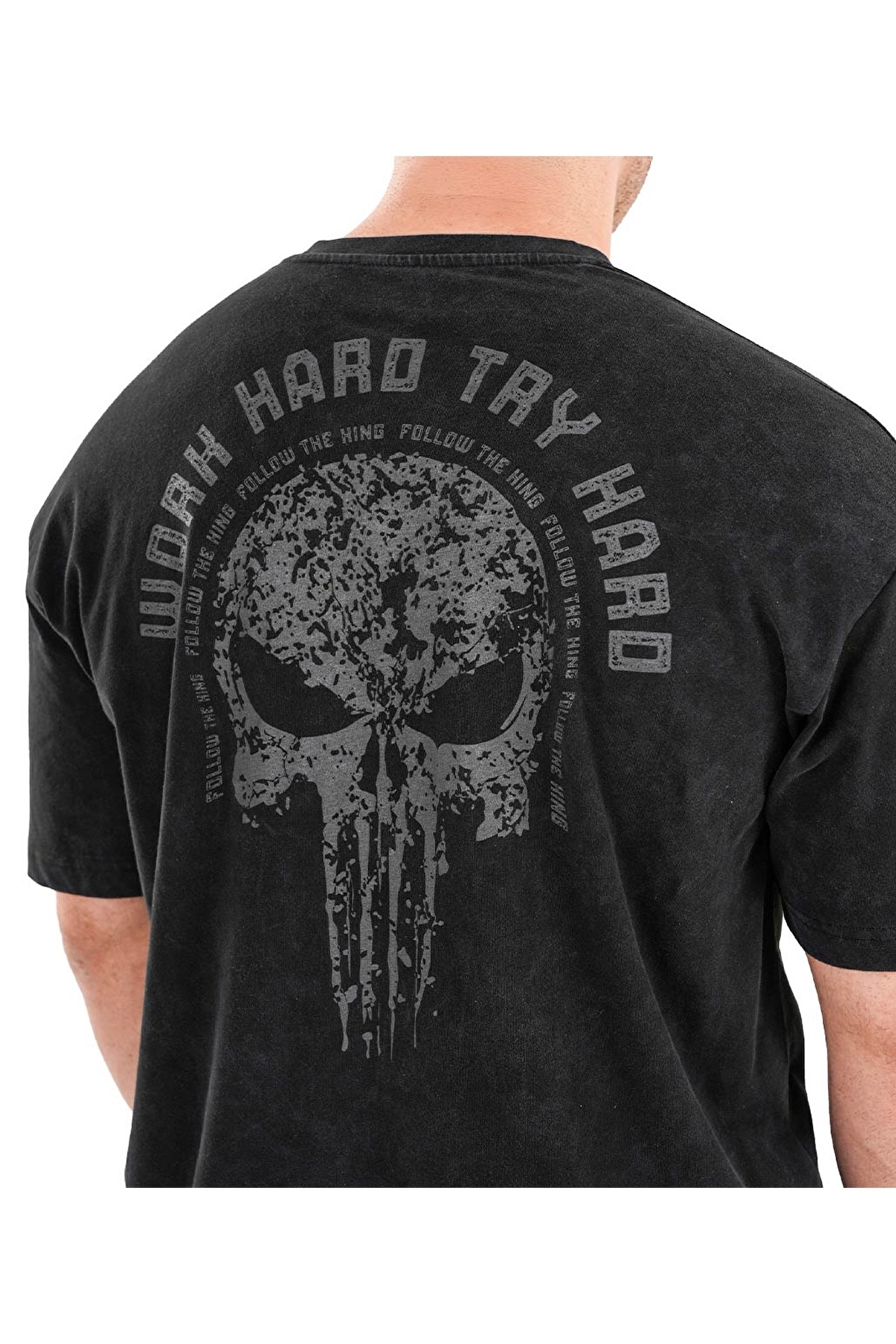 Kingsize Hard Work Antik Yıkamalı Oversize T-Shirt Siyah Kingsize Hard Work Antik Yıkamalı Oversize T-Shirt Siyah 25151 3XL