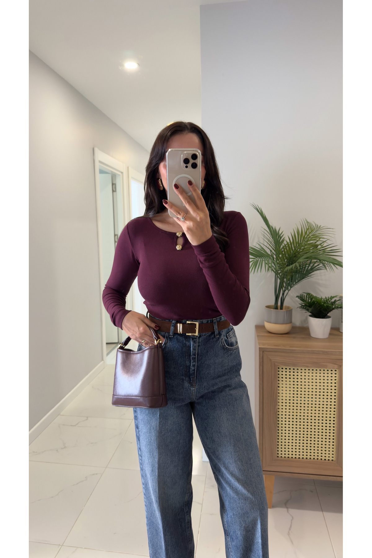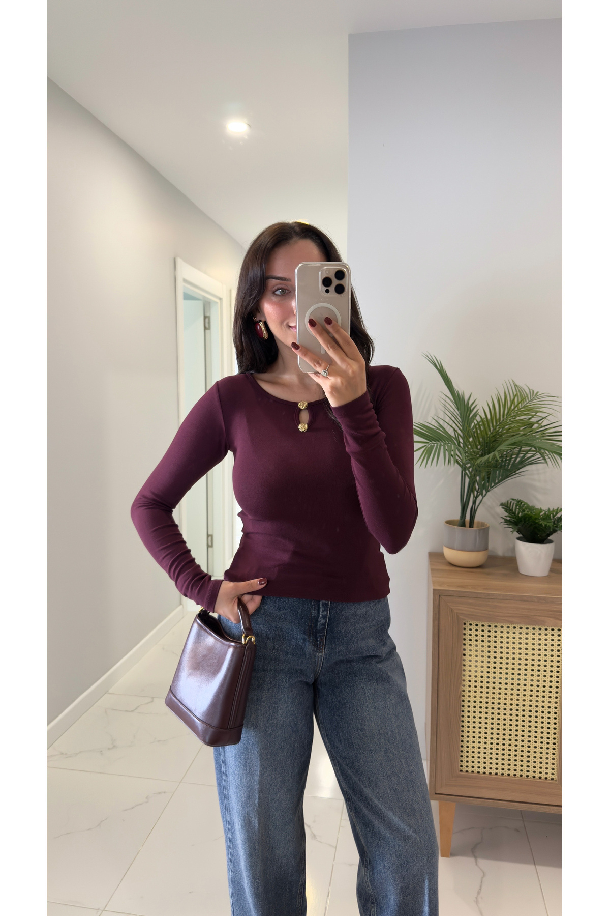Kenry Bordo Gold Toka Detaylı Bluz Kenry Bordo Gold Toka Detaylı Bluz BLZ123 L