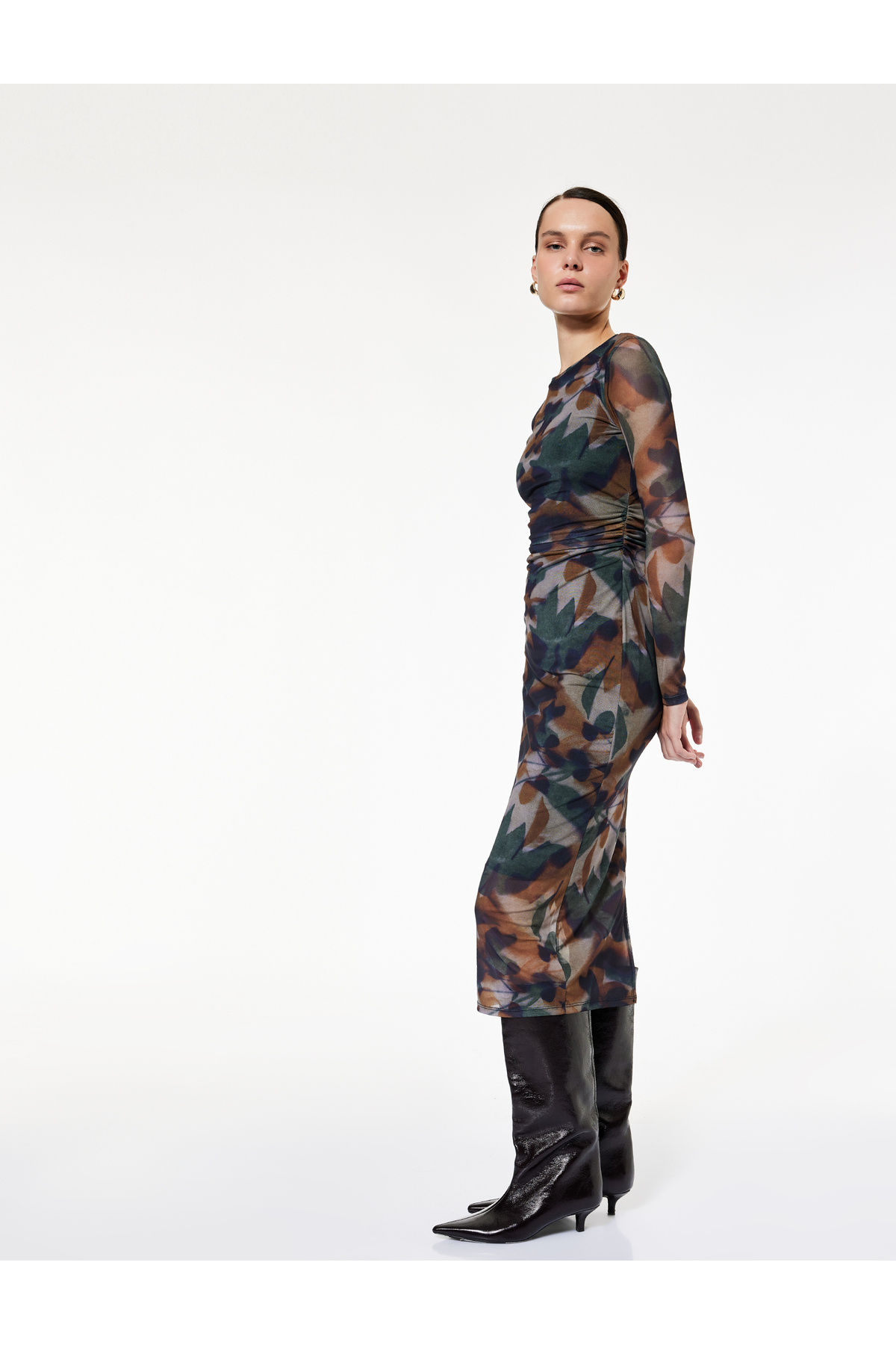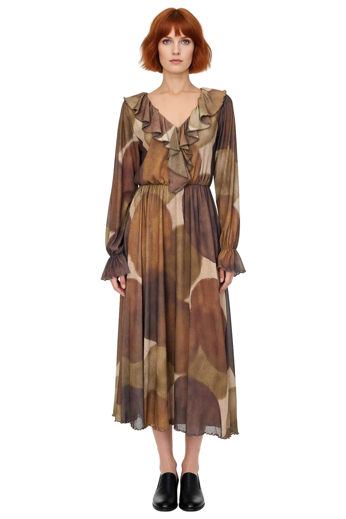 Kadınlar İçin Kışlık Uzun Kollu Fırfırlı V Yaka Soyut Desenli Köpük Dokuma Maxi Elbise Stili. Kadınlar İçin Kışlık Uzun Kollu Fırfırlı V Yaka Soyut Desenli Köpük Dokuma Maxi Elbise Stili. MS7131461858 XL