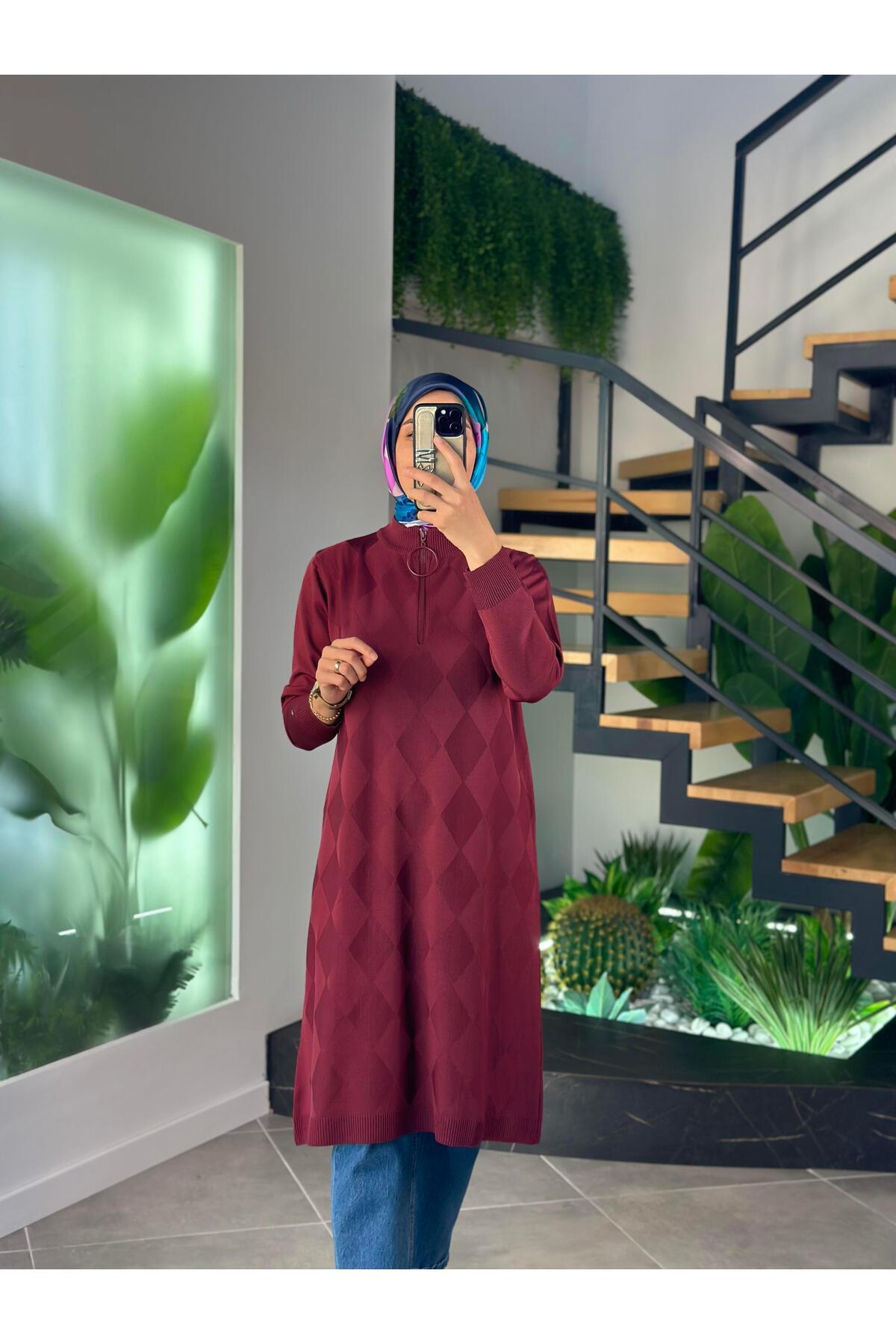 Halkalı Fermuar ve Yüksek Yaka Triko Tunik Halkalı Fermuar ve Yüksek Yaka Triko Tunik Rose-Meery-25YTD4113 3