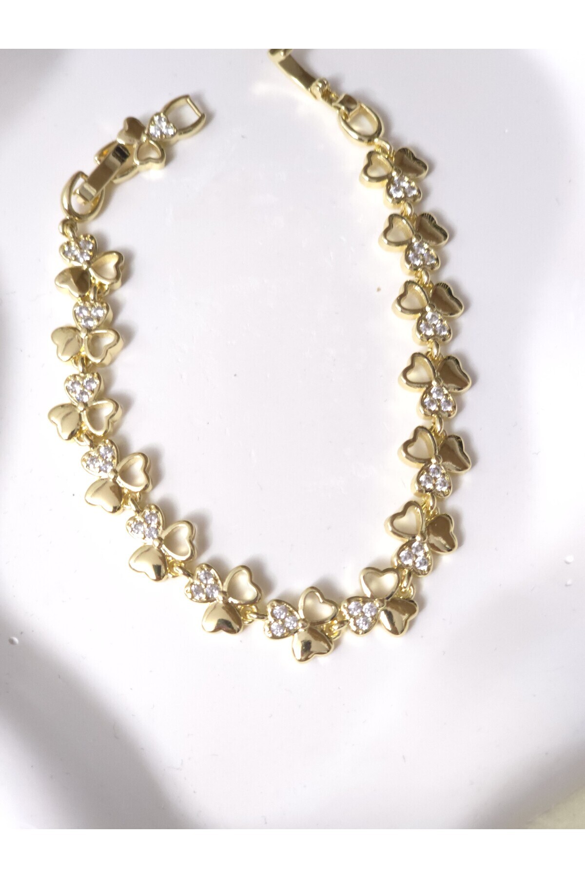 Zarif Yonca Çiçek Altın Renk Çelik 14K Bileklik Işıltılı Şıklık Zirkon Taşlı Yonca Bileklik 17+2cm Zarif Yonca Çiçek Altın Renk Çelik 14K Bileklik Işıltılı Şıklık Zirkon Taşlı Yonca Bileklik 17+2cm 015 19 cm