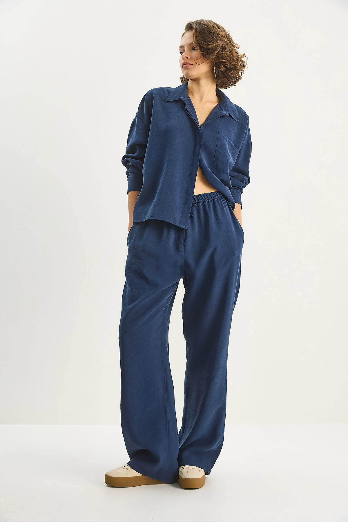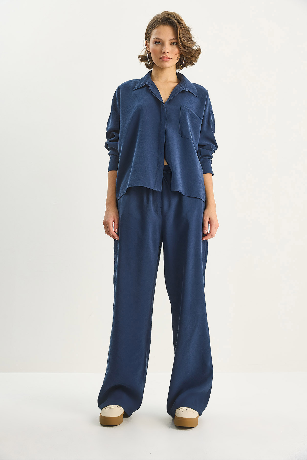 Kadın Modal Tek Cepli Oversize Gömlek Yüksek Bel Bol Pantolon Takım 210 60283673 Kadın Modal Tek Cepli Oversize Gömlek Yüksek Bel Bol Pantolon Takım 210 60283673 Standart