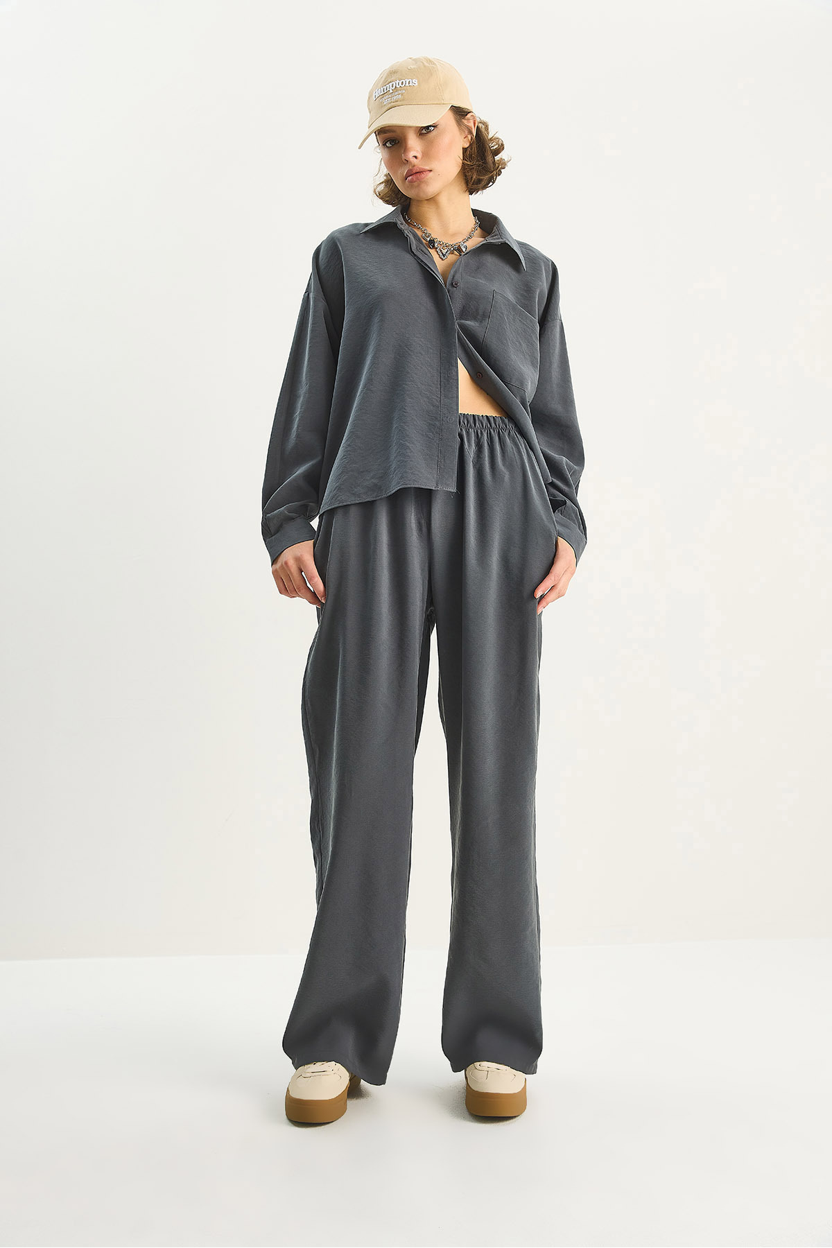 Kadın Modal Tek Cepli Oversize Gömlek Yüksek Bel Bol Pantolon Takım 210 60283673 Kadın Modal Tek Cepli Oversize Gömlek Yüksek Bel Bol Pantolon Takım 210 60283673 Standart