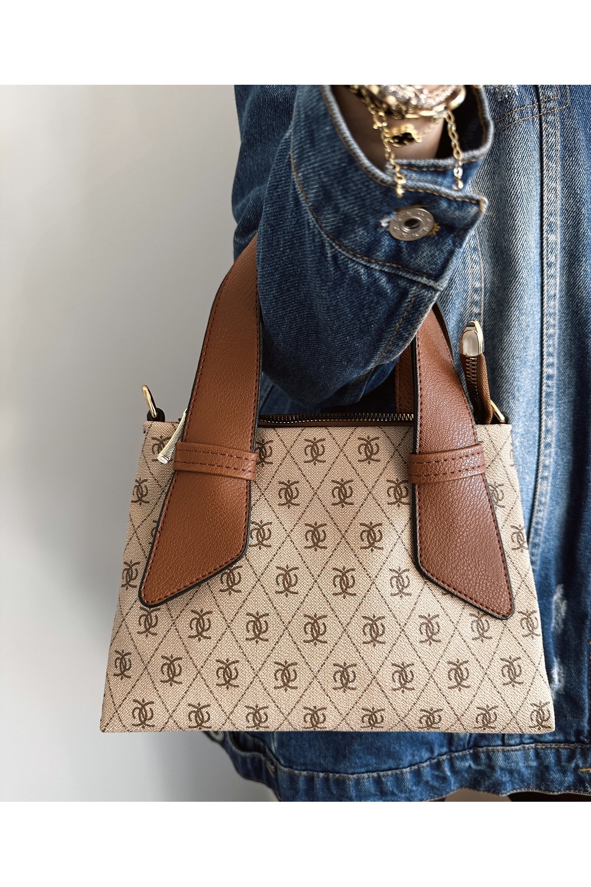 Gold Aksesuar Detaylı Askılı El ve Omuz Çantası Gold Aksesuar Detaylı Askılı El ve Omuz Çantası CBS0065. تک سایز