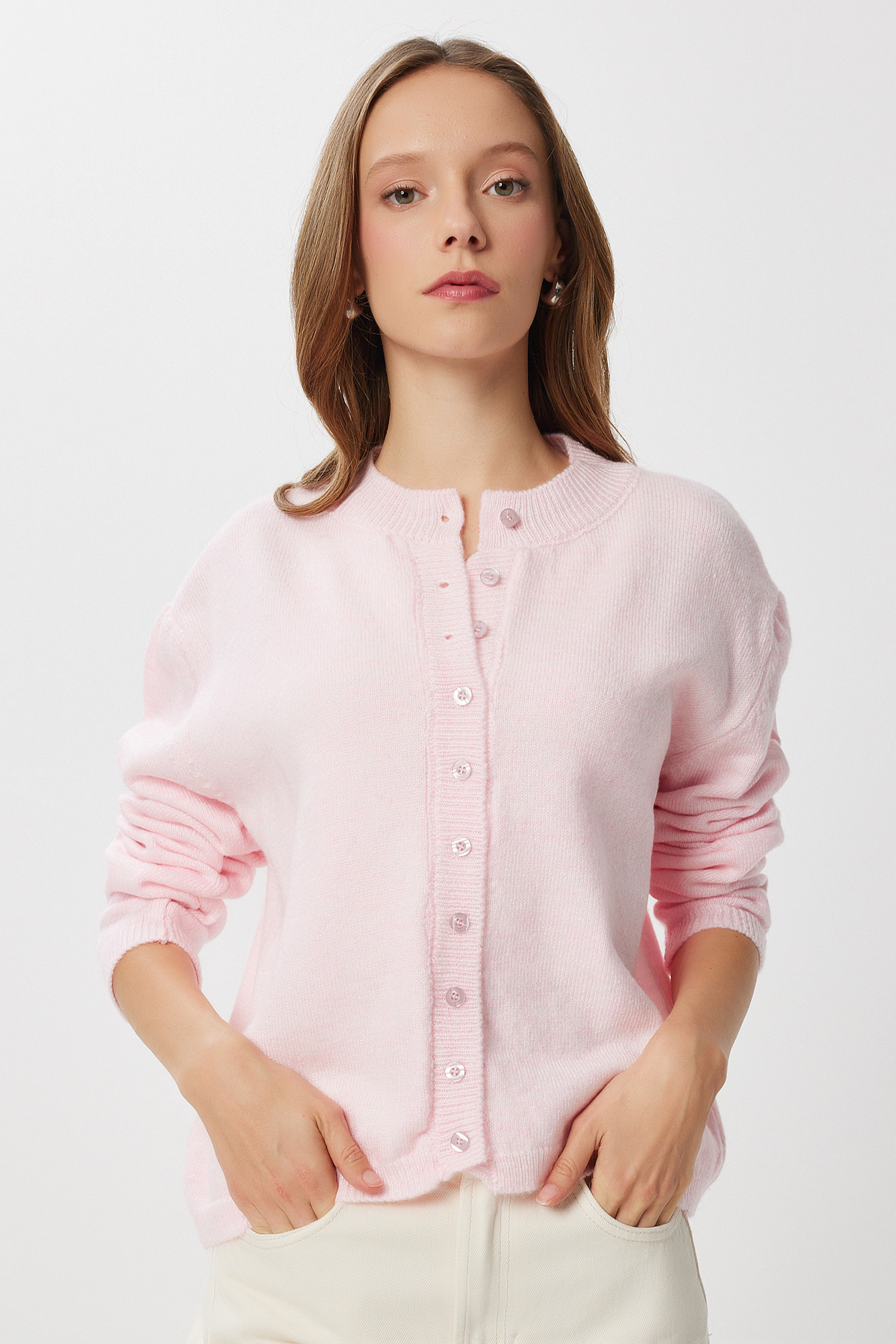 Düğmeli Yün Efektli Triko Hırka LBP0027 PEMBE Düğmeli Yün Efektli Triko Hırka LBP0027 PEMBE Standart