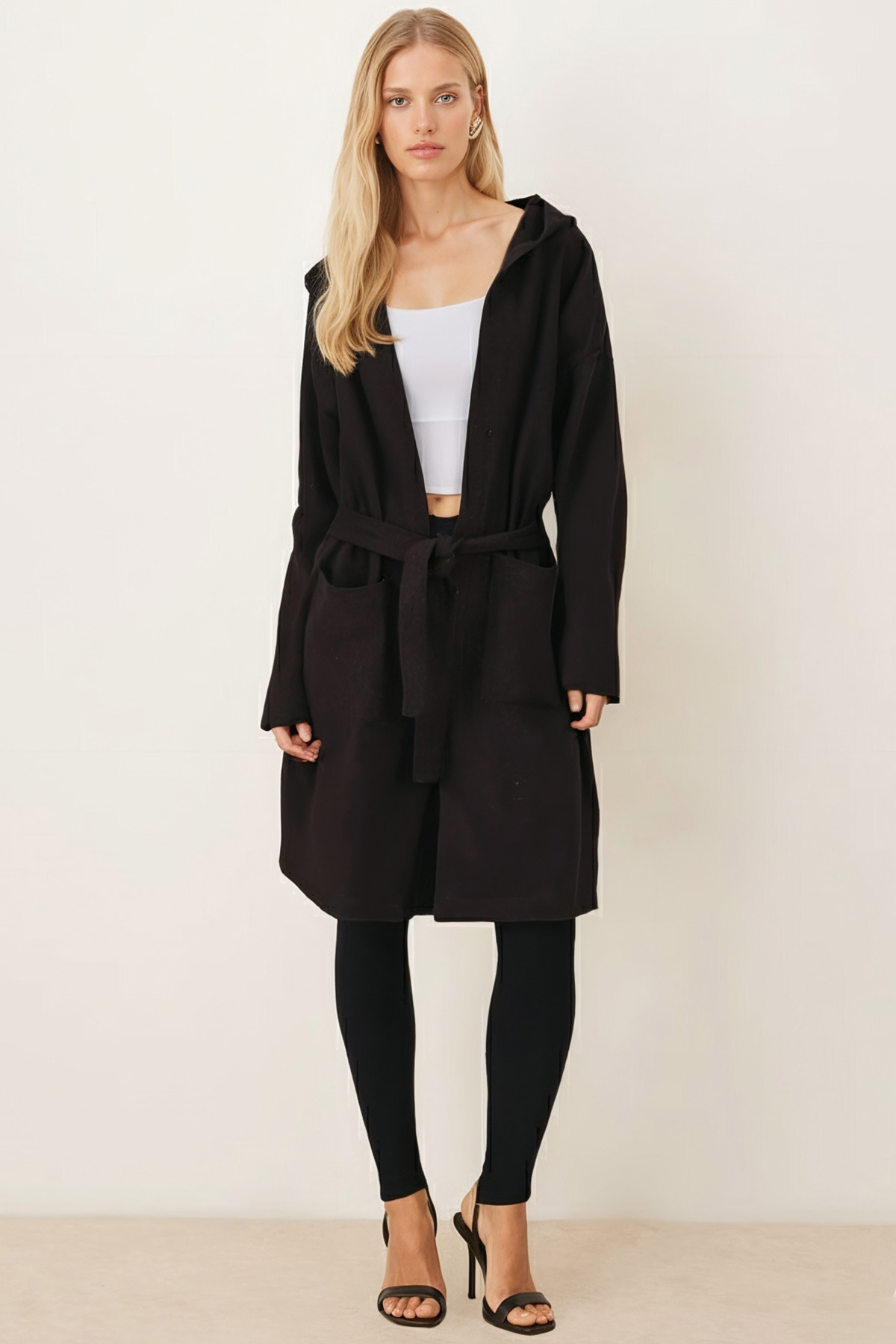 Kadın Siyah Beli Kuşaklı Cepli Kapüşonlu Oversize Kaşe Kaban ARM-26K001025 Kadın Siyah Beli Kuşaklı Cepli Kapüşonlu Oversize Kaşe Kaban ARM-26K001025 XL