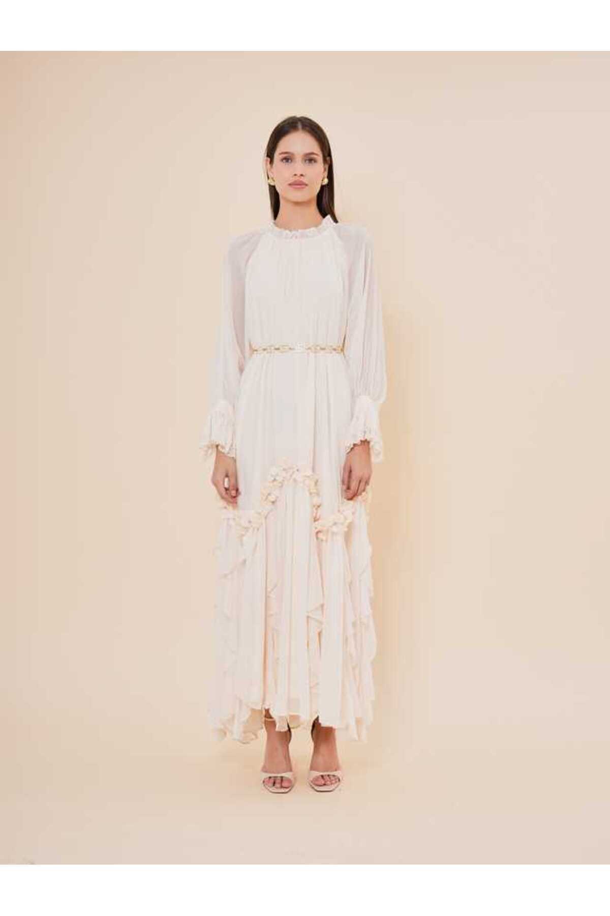 Volan ve Çiçek Detaylı Şifon Uzun Elbise 50411 Volan ve Çiçek Detaylı Şifon Uzun Elbise 50411 2620450411 44