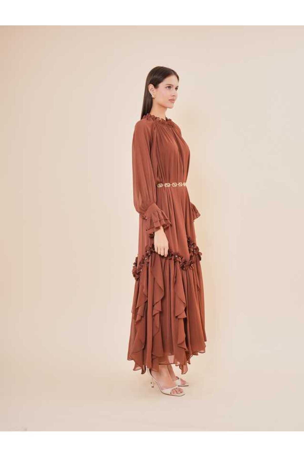 Volan ve Çiçek Detaylı Şifon Uzun Elbise 50411 Volan ve Çiçek Detaylı Şifon Uzun Elbise 50411 2620450411 44